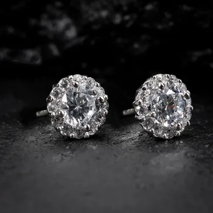 Product Introduction: These elegant E3488 white gold diamond stud earrings are designed to embody timeless beauty and refined sophistication. Crafted with precision, they feature a classic round brilliant-cut diamond at the center, surrounded by a halo of smaller diamonds, creating a radiant and sparkling effect. Ideal for wedding occasions or everyday elegance, these earrings offer a perfect blend of luxury and simplicity. Core Features: Reasons to Choose: E3488 White Gold Diamond Stud Earrings – Classic Round Brilliant Cut for Women's Wedding Jewelry