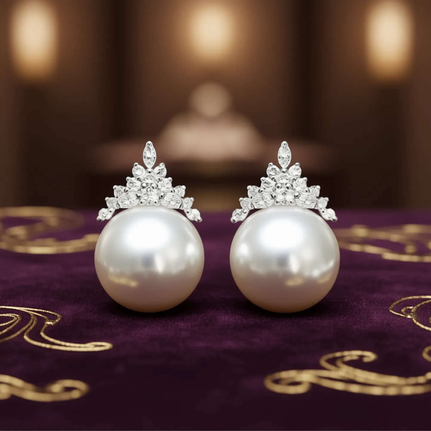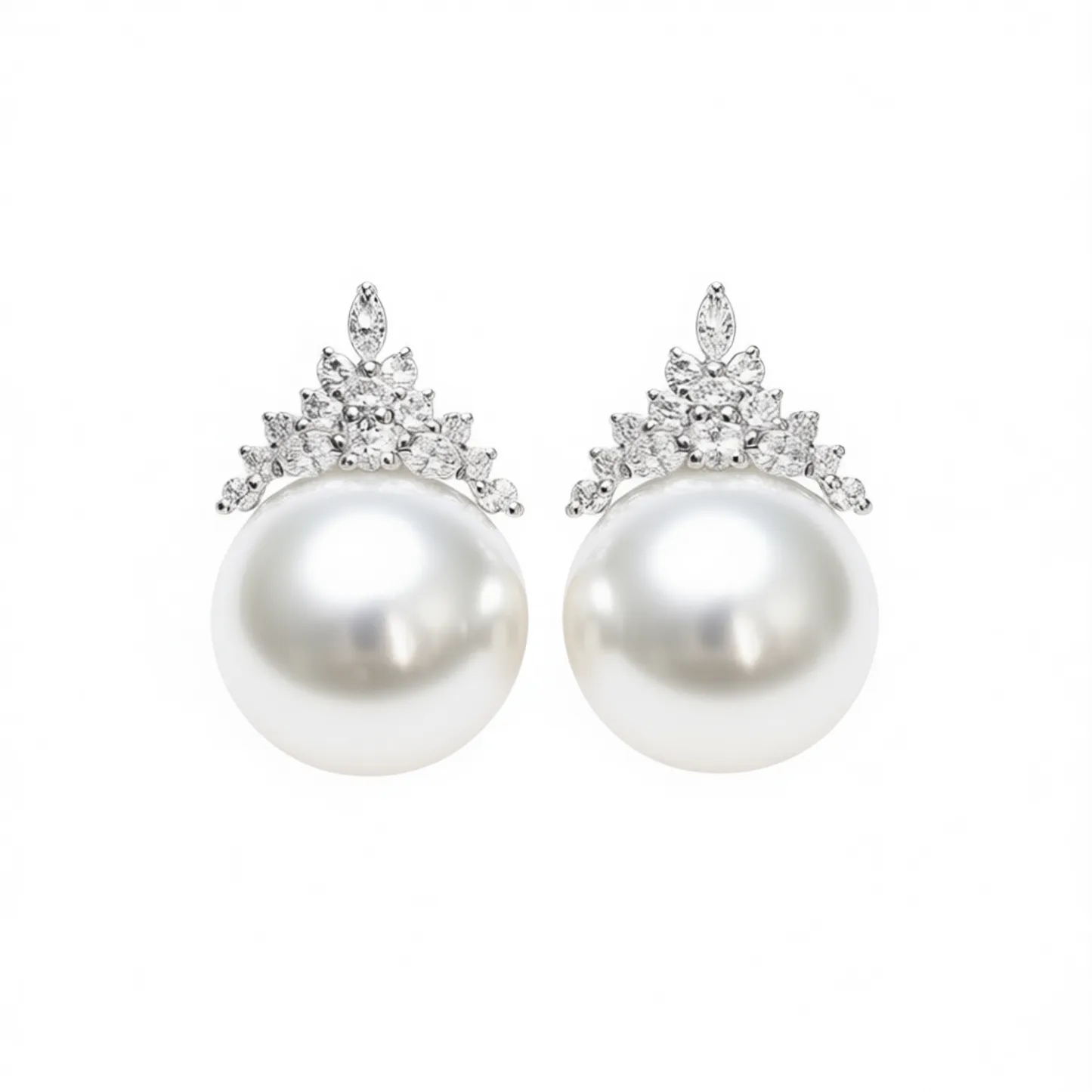 Color White Gold shape\pattern CROWN pearlgrade AAA pearlshape Round Shape earringstype Stud Earrings occasion Wedding inlaytechnology Claw Setting gender Women's modelnumber E3632 pearlcolor White metalstype 18K GOLD pearltype Akoya Pearl plating White Gold style Classic pearlmaterial Cultured Pearl