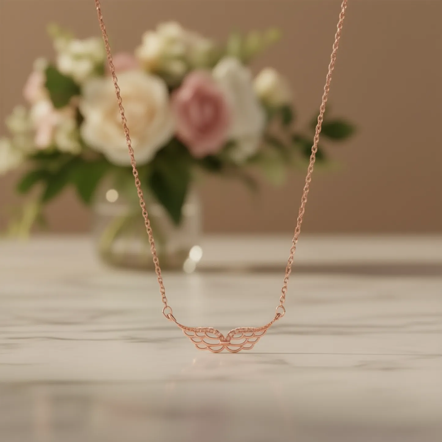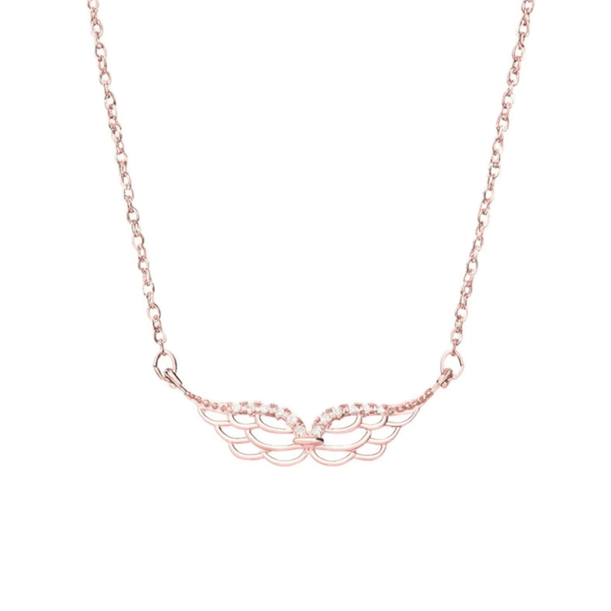 Product Introduction: This elegant Rose Gold Wings Pendant Necklace features a delicate wing design, beautifully crafted with cubic zirconia stones set in a pave setting. Designed for women who appreciate romantic and timeless jewelry, it combines sophistication with everyday wearability. The pendant is attached to a refined link chain, making it a versatile accessory suitable for various occasions. Core Features: Why Choose This Necklace: