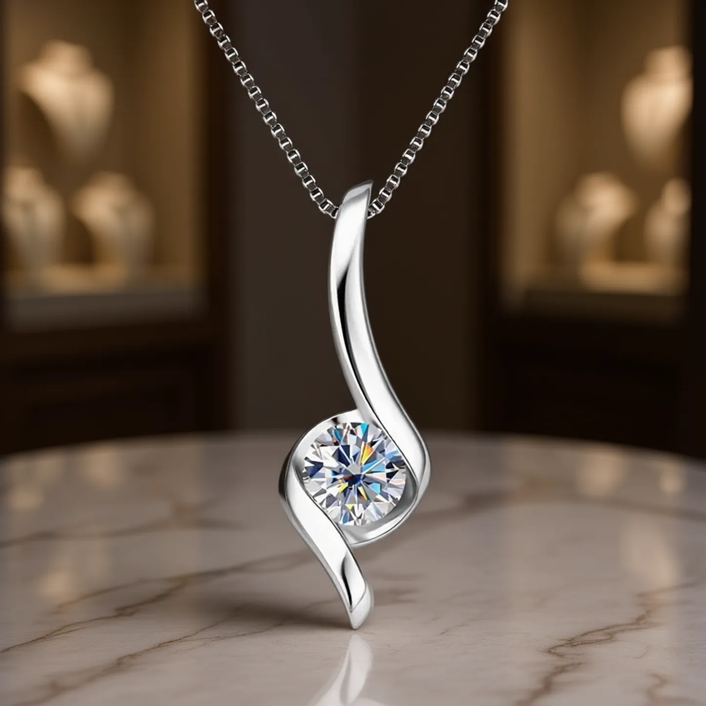 Product Introduction: This elegant pendant necklace combines timeless design with modern craftsmanship, making it a versatile addition to any jewelry collection. Crafted from high-quality925 sterling silver and finished with a rhodium plating, the XL1342 necklace offers lasting shine and resistance to tarnish. The centerpiece is a beautifully set crystal, securely held in a bezel setting that enhances its brilliance and durability. The flowing, minimalist silhouette of the pendant adds a touch of grace and sophistication, while the sleek box chain ensures comfortable wear. Core Features: Reasons to Purchase: