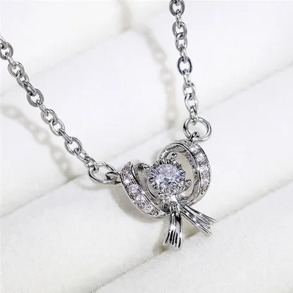 Color White Gold modelnumber XL283 crystaltype other shape\pattern Bowknot occasion Everyday Wear inlaytechnology Claw Setting gender Unisex mainstone Crystal, Rhinestone necklacestype Pendant Necklaces jewelrymainmaterial 925 SILVER plating Gold Plated style Cute chaintype Box Chain