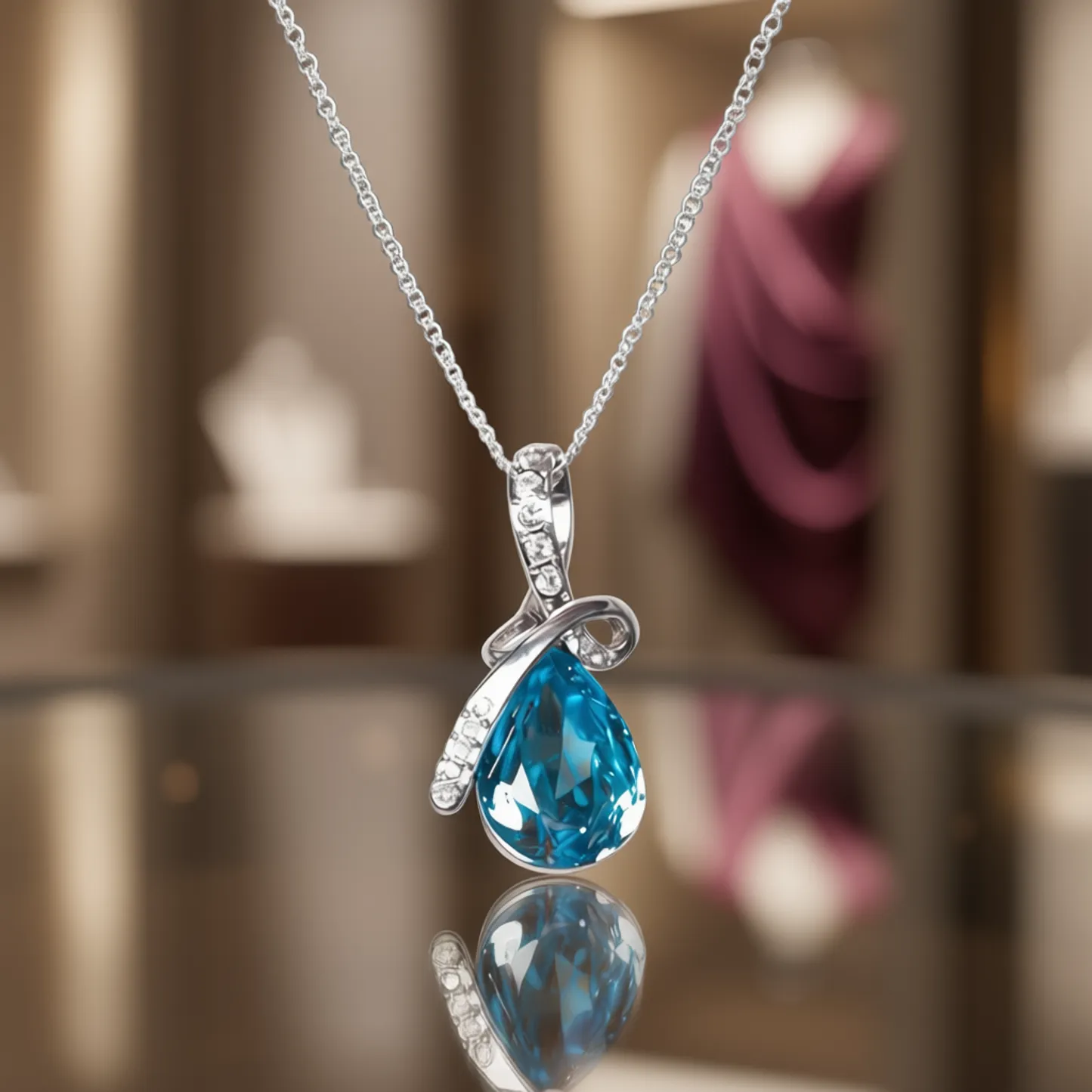 Color Blue modelnumber XL975 shape\pattern Water Drop occasion Gift inlaytechnology Pave Setting materialtype Zinc Alloy gender Women's mainstone Cubic Zirconia jewelrymainmaterial Crystal, Rhinestone style Classic chaintype Box Chain diamondshape PEAR stoneshape PEAR jewelrytype Necklaces jewelrystonecreationmethod Lab Created necklacestype Pendant Necklaces plating Rhodium Plated birthstone DECEMBER application everyday wearing certificatetype None