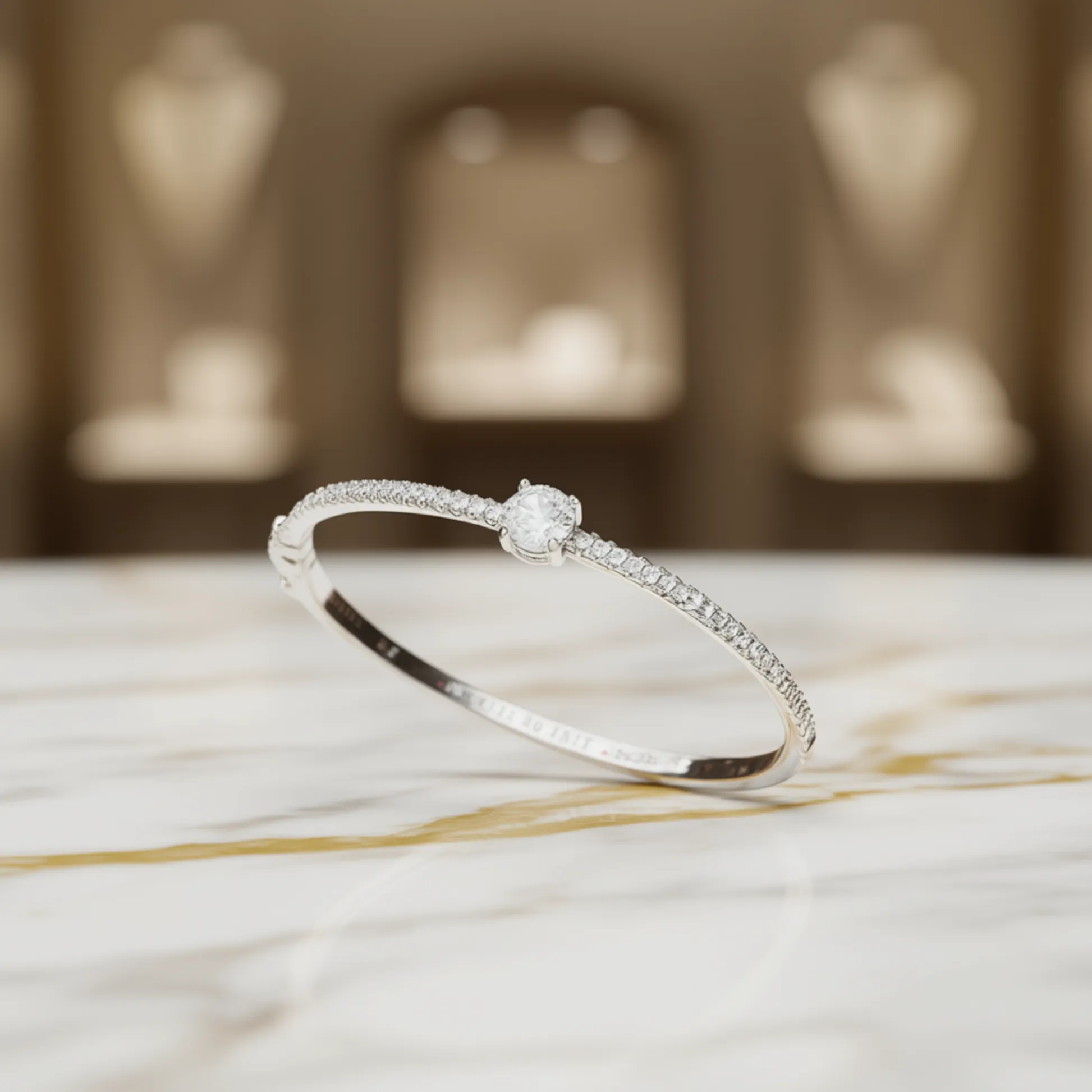 Product Introduction: This exquisite XL1476 diamond bracelet embodies timeless elegance and refined craftsmanship, designed to celebrate special moments such as engagements. Crafted from premium white gold, it features a central round brilliant cut natural diamond of G color, radiating brilliance and purity. The delicate band is adorned with a continuous row of smaller diamonds, enhancing its luminous appeal. Perfect for women who appreciate classic design and exceptional quality, this piece combines sophistication with enduring beauty. Core Features: Reasons to Purchase: