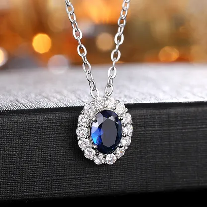 Color XL1054 Necklace jewelrytype Necklace modelnumber XL1054 diamondshape Round Brilliant Cut shape\pattern Flower occasion Wedding inlaytechnology Circling setting gender Women's mainstone Sapphire necklacestype Pendant Necklaces jewelrymainmaterial 925 SILVER style Classic chaintype Link Chain