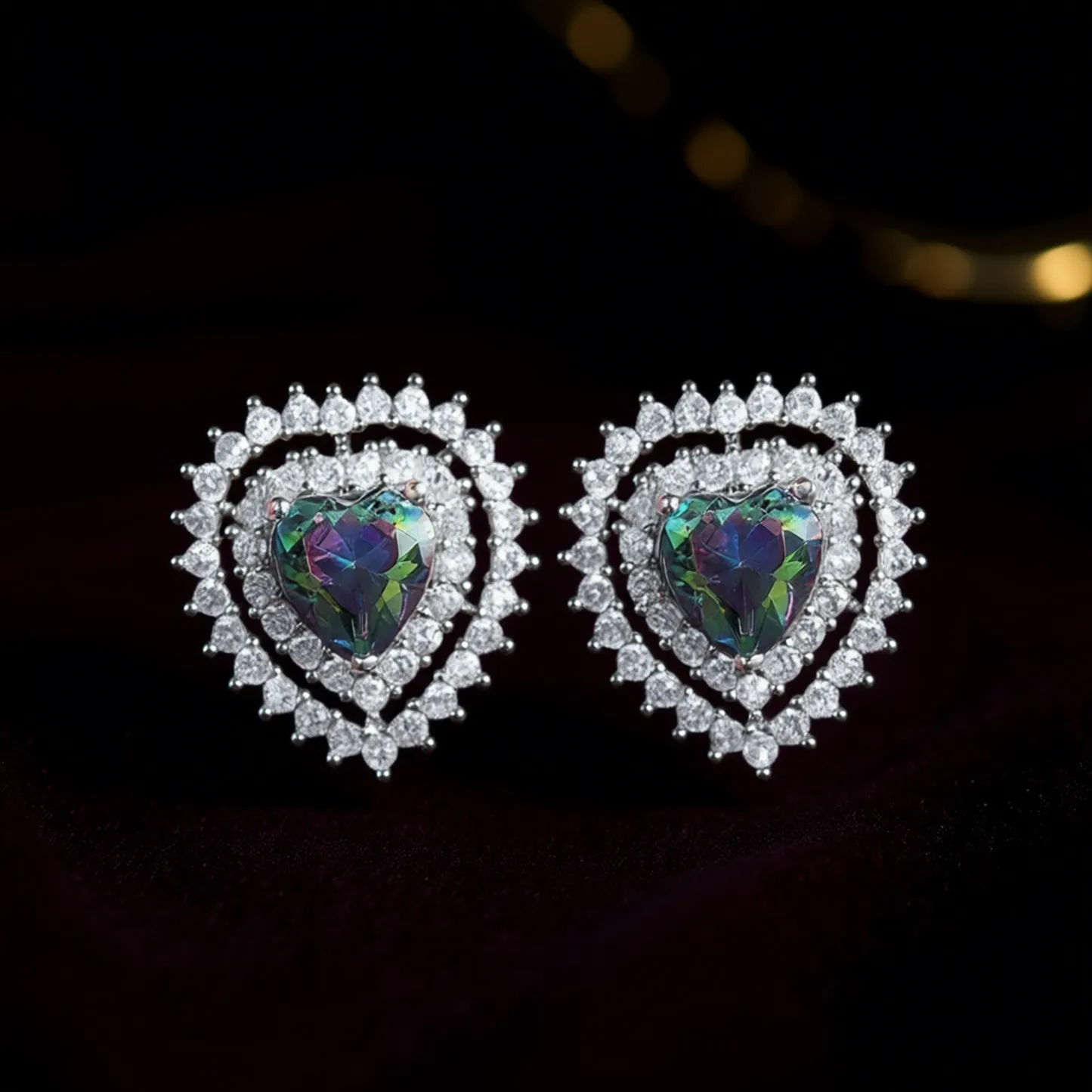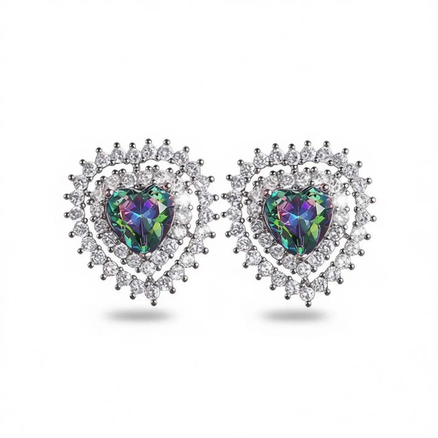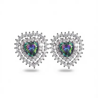 Color Green jewelrytype earrings crystaltype Rainbow Quartz shape\pattern Heart earringstype Stud Earrings occasion Party inlaytechnology Claw Setting gender Women's mainstone Crystal, Rhinestone jewelrymainmaterial 925 SILVER style Romantic