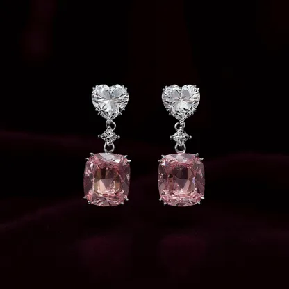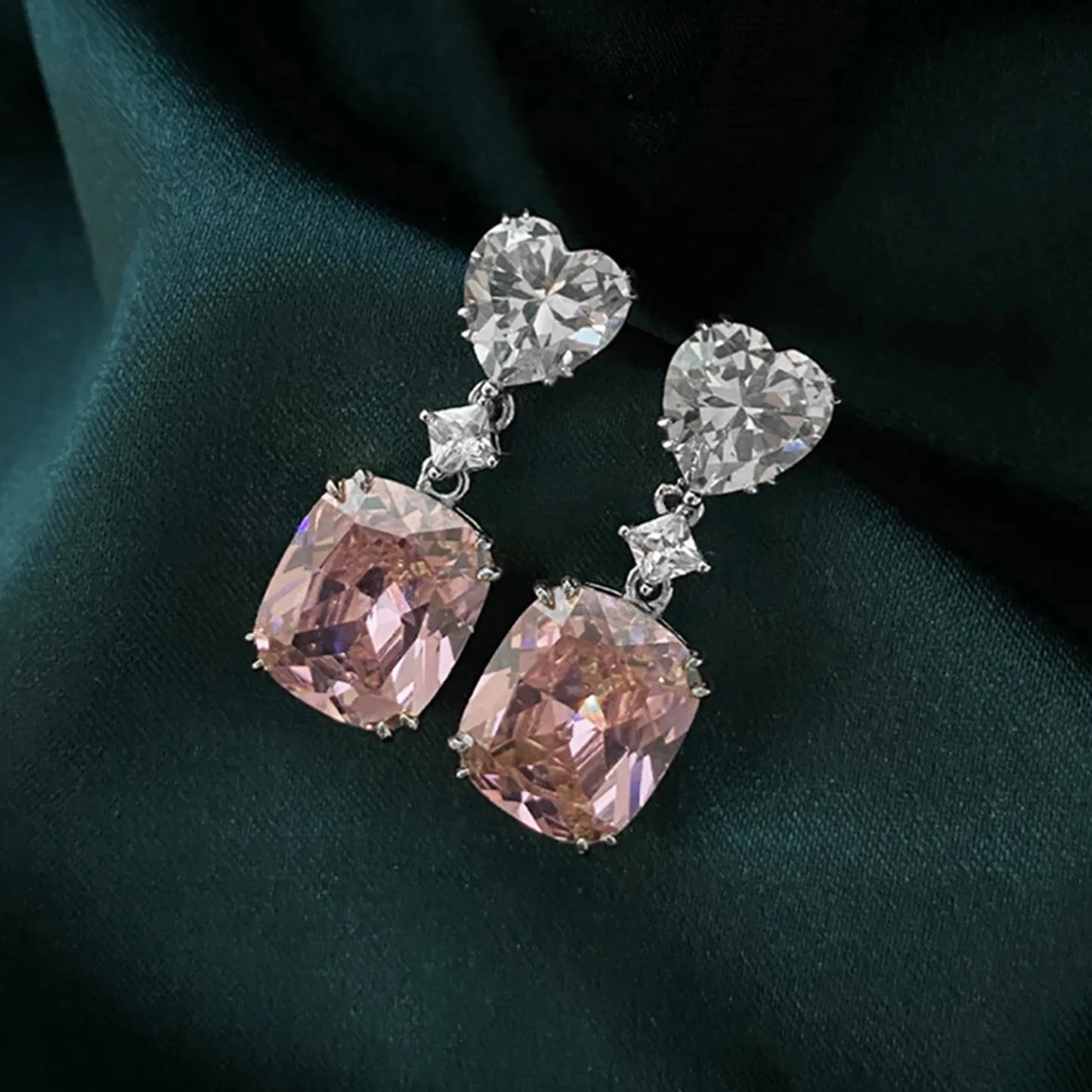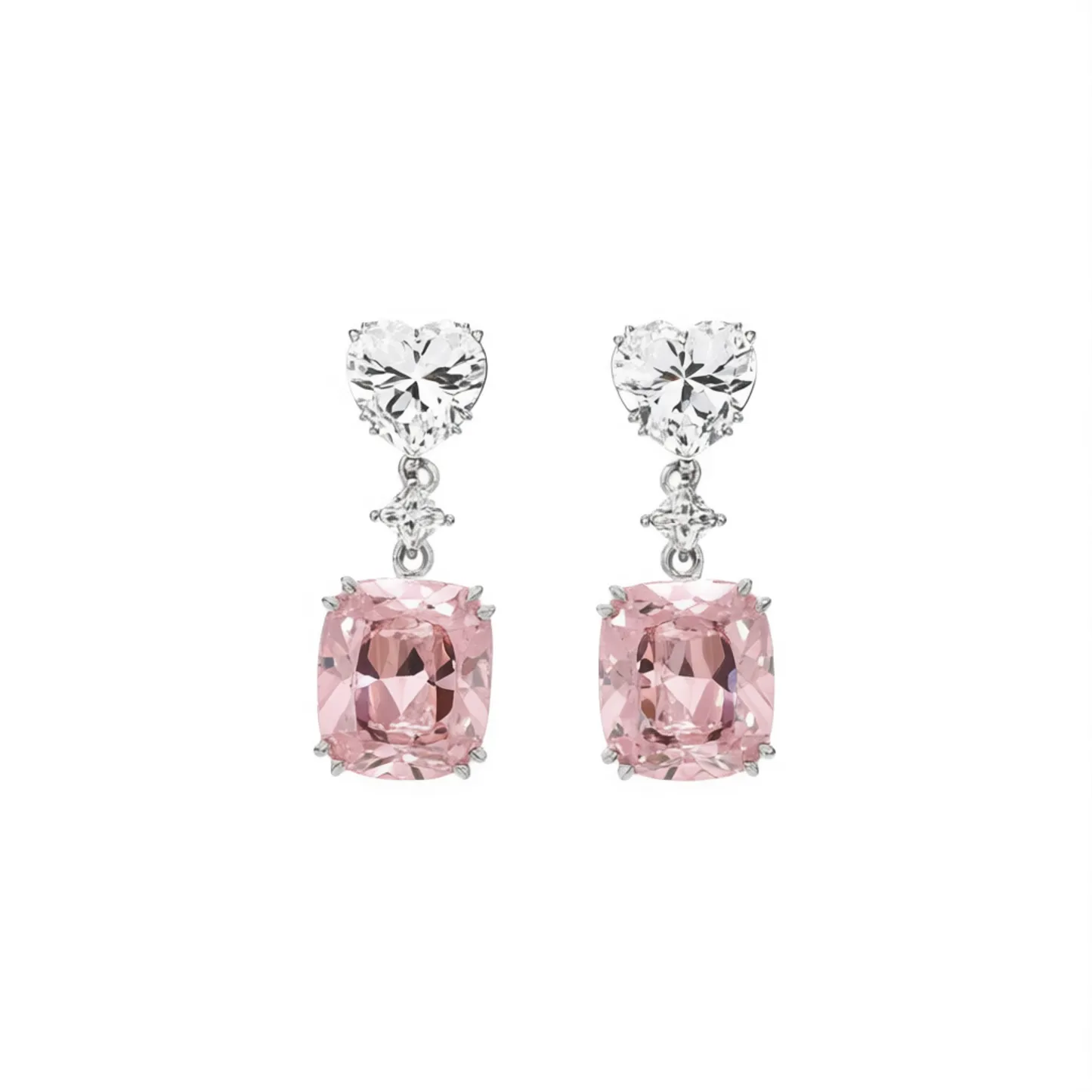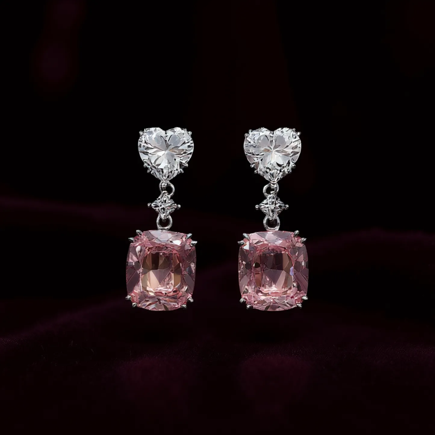 Product Introduction: Elevate your elegance with these exquisite Pink Diamond Drop Earrings, crafted from premium925 sterling silver. Designed with a romantic aesthetic, these earrings feature a delicate heart-shaped crystal at the top, leading to a stunning cushion-cut rose quartz stone set in a secure claw setting. Perfect for special occasions, they combine timeless beauty with modern design. Core Features: Why Choose These Earrings: