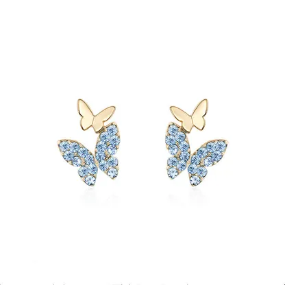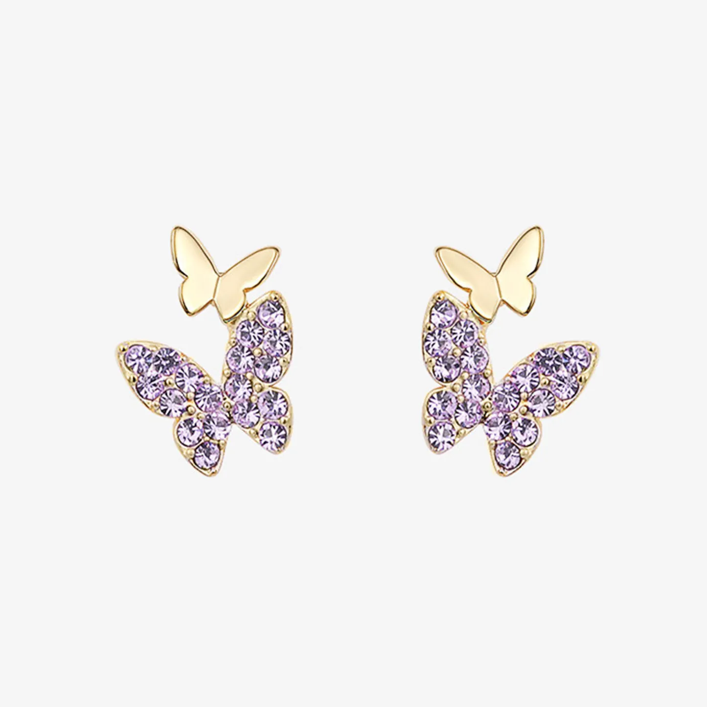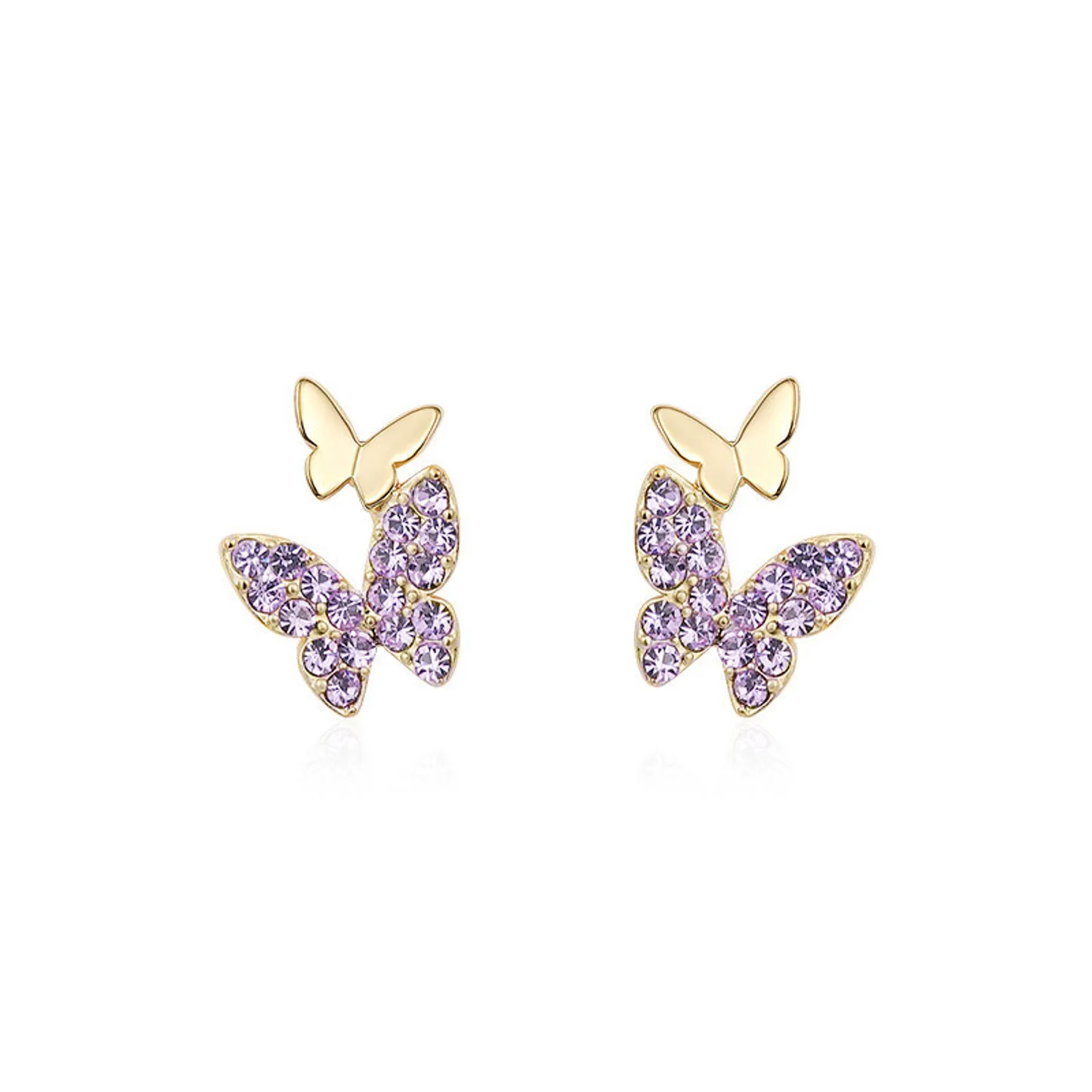 Color Purple shape\pattern Butterfly earringstype Stud Earrings occasion Gift inlaytechnology Bezel Setting materialtype Zinc Alloy gender Women's mainstone Crystal, Rhinestone jewelrytype Earrings jewelrymainmaterial Alloy plating Gold Plated style Cute certificatetype None
