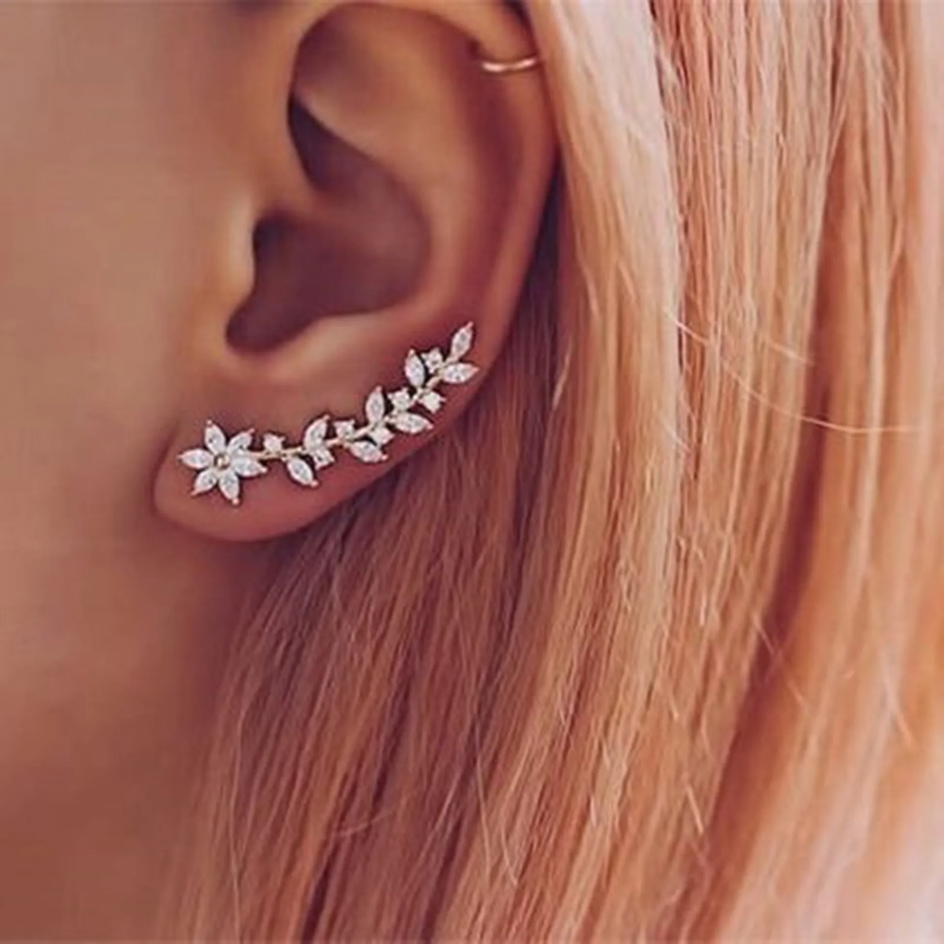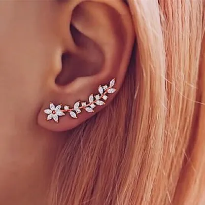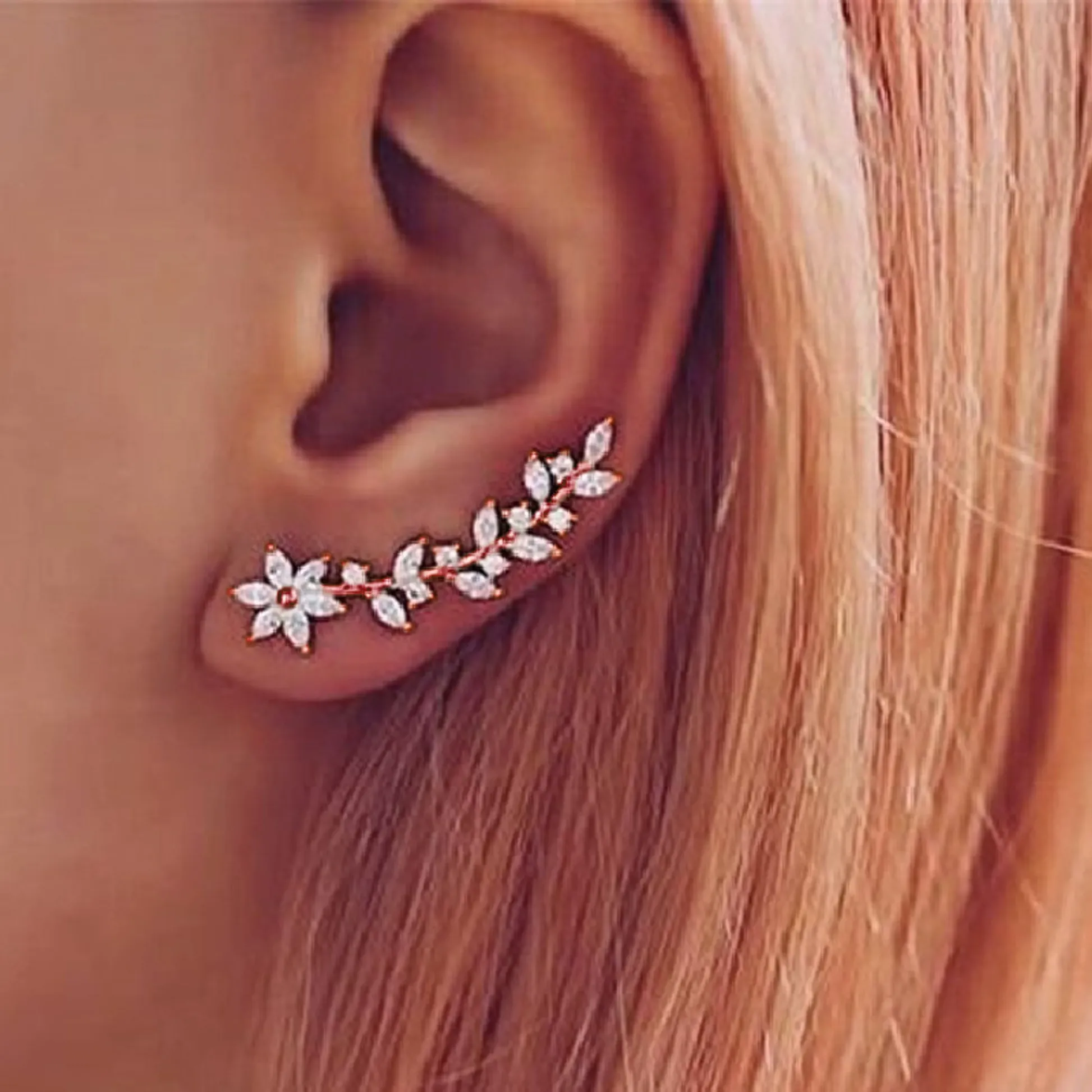 Color Rose Gold diamondshape Marquise Cut shape\pattern Flower earringstype Cuff Earrings occasion Wedding inlaytechnology Prong Setting materialtype Zinc Alloy gender Women's mainstone Crystal, Rhinestone jewelrytype Earrings jewelrymainmaterial Alloy plating Gold Plated style Romantic