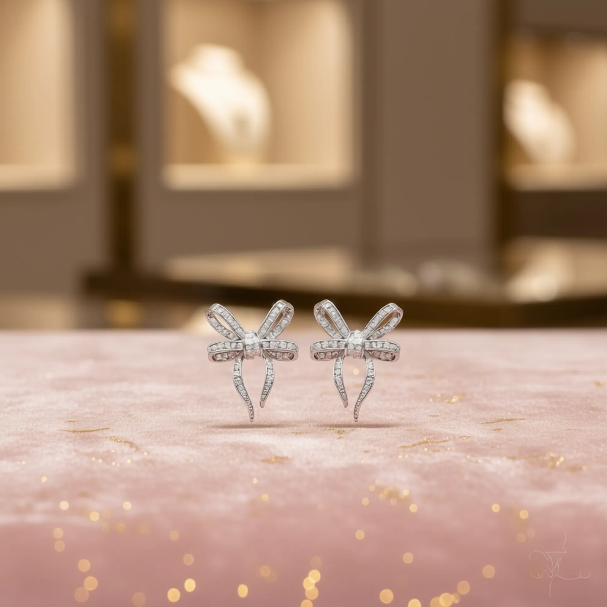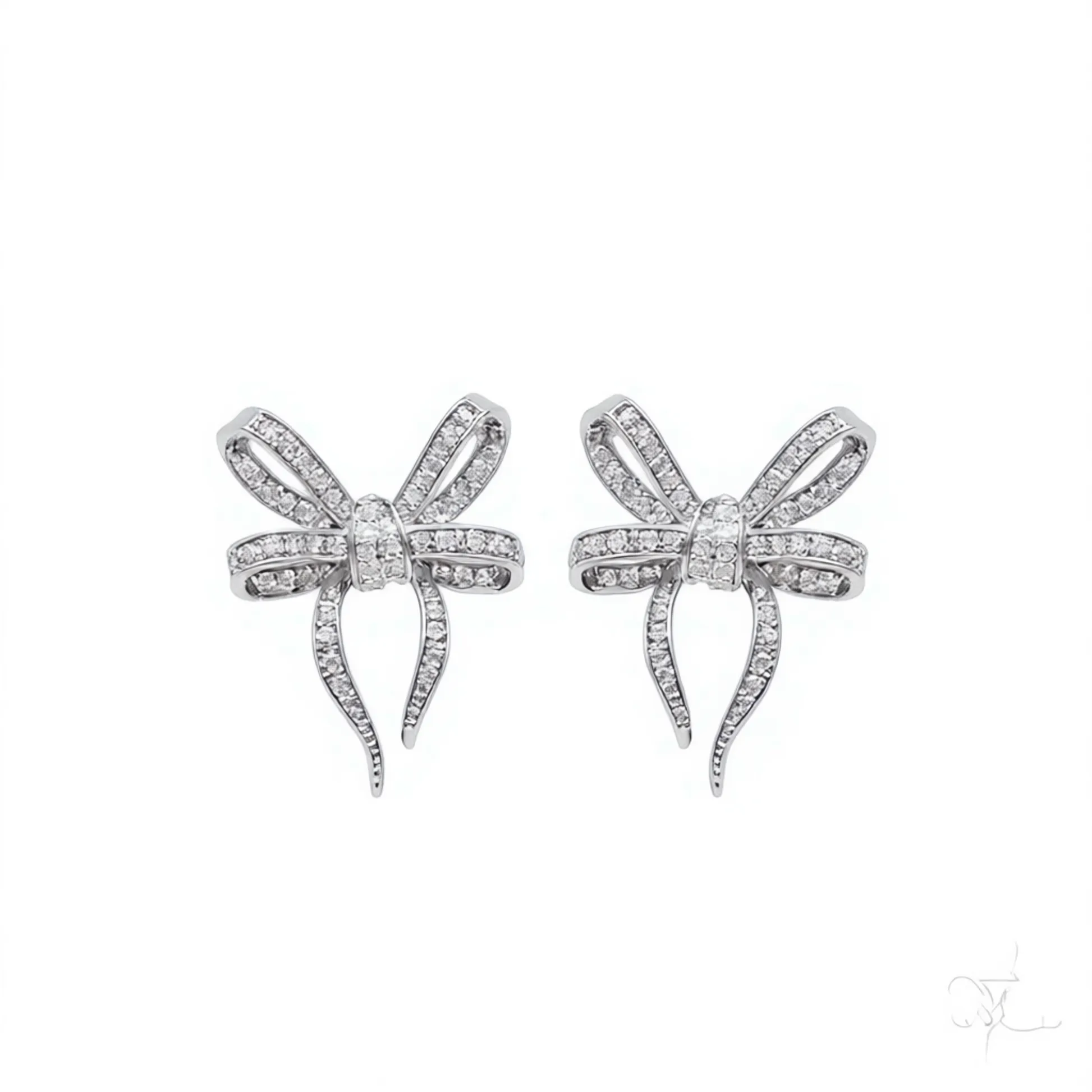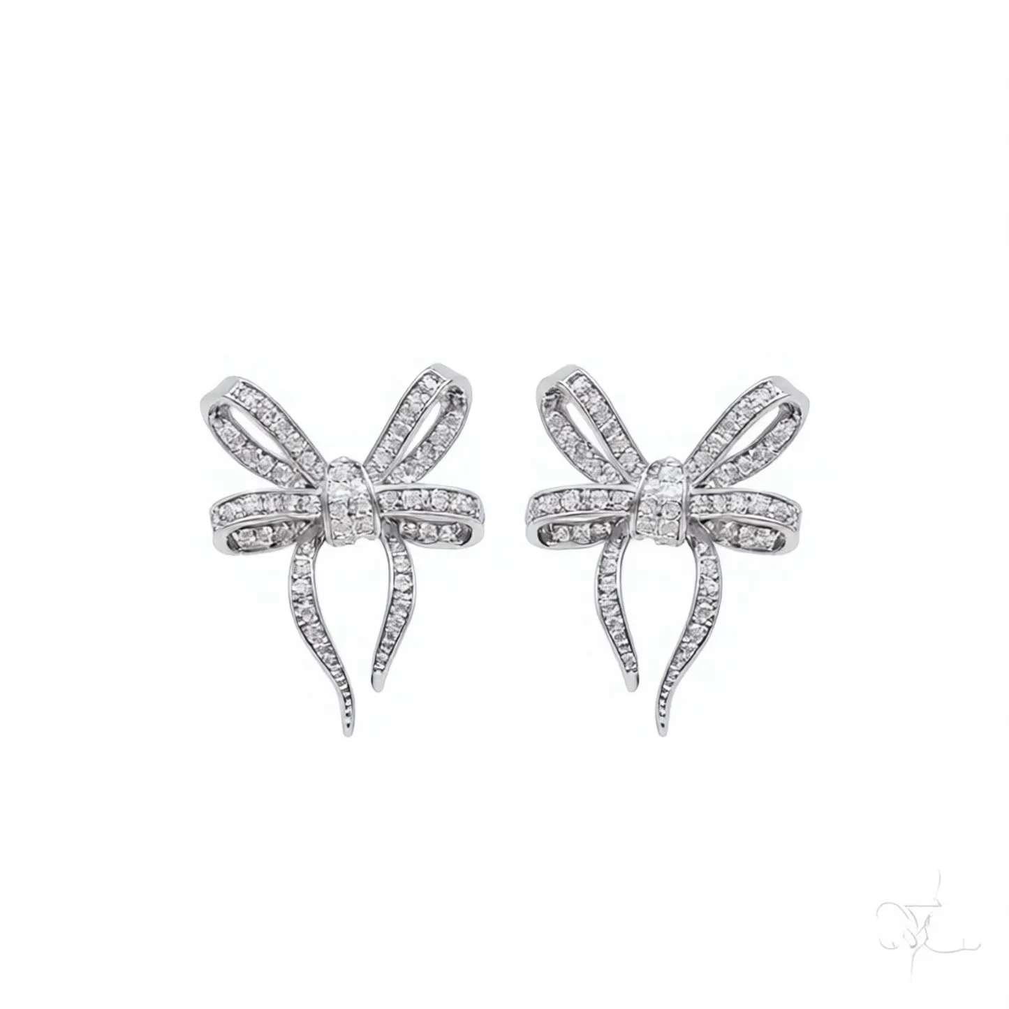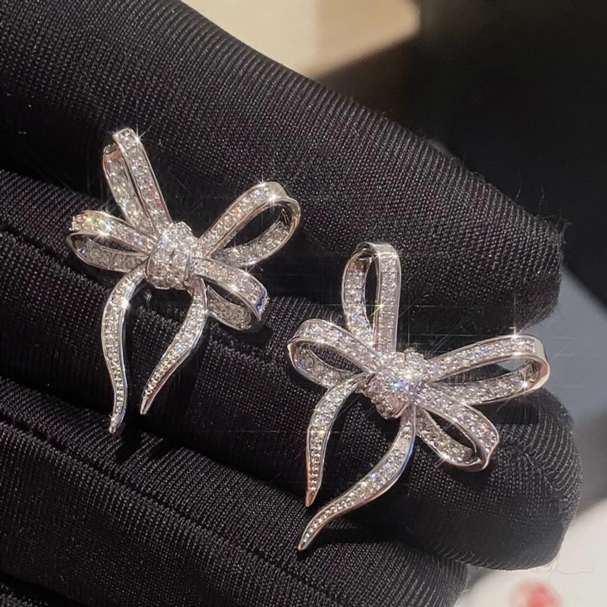 Color White Gold diamondshape Round Brilliant Cut shape\pattern Bowknot earringstype Stud Earrings occasion Party inlaytechnology Channel setting materialtype Zinc Alloy gender Women's mainstone Crystal, Rhinestone jewelrytype Earrings jewelrymainmaterial Alloy plating Rhodium Plated style Cute certificatetype None