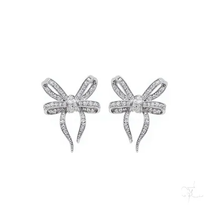 Cute Bowknot Stud Earrings – Elegant White Gold Plated Rhinestone Jewelry for Women These charming bowknot stud earrings feature a delicate and fashionable design, perfect for adding a touch of elegance to any outfit. Crafted with precision, they are made from zinc alloy and finished with a rhodium plating that gives them a luxurious white gold appearance, ensuring long-lasting shine and resistance to tarnishing. The earrings are adorned with round brilliant-cut crystal rhinestones set in a secure channel setting, creating a sparkling effect that catches the light beautifully. Their bowknot shape brings a playful yet sophisticated flair, making them ideal for parties, special occasions, or everyday wear. Designed specifically for women, these lightweight and comfortable stud earrings are easy to wear and suitable for most ear types. With their timeless style and high-quality materials, they make a thoughtful gift or a lovely addition to your own jewelry collection. Perfect for enhancing your look at social gatherings or festive events, these earrings combine fashion and functionality in a refined package.