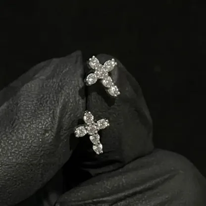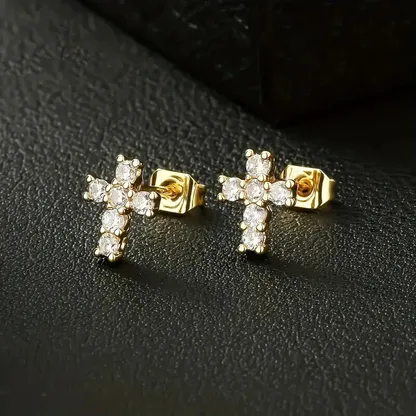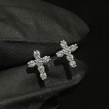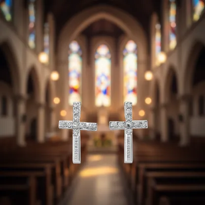 Product Introduction: These elegant cross stud earrings feature a timeless religious design, crafted to reflect faith and style. Made from high-quality zinc alloy with a silver finish, they offer a refined look suitable for both everyday wear and special occasions. The cross-shaped earrings are adorned with sparkling zircon stones in a round brilliant cut, meticulously set using claw setting technology to enhance brilliance and durability. Core Features: Why Choose This Product: