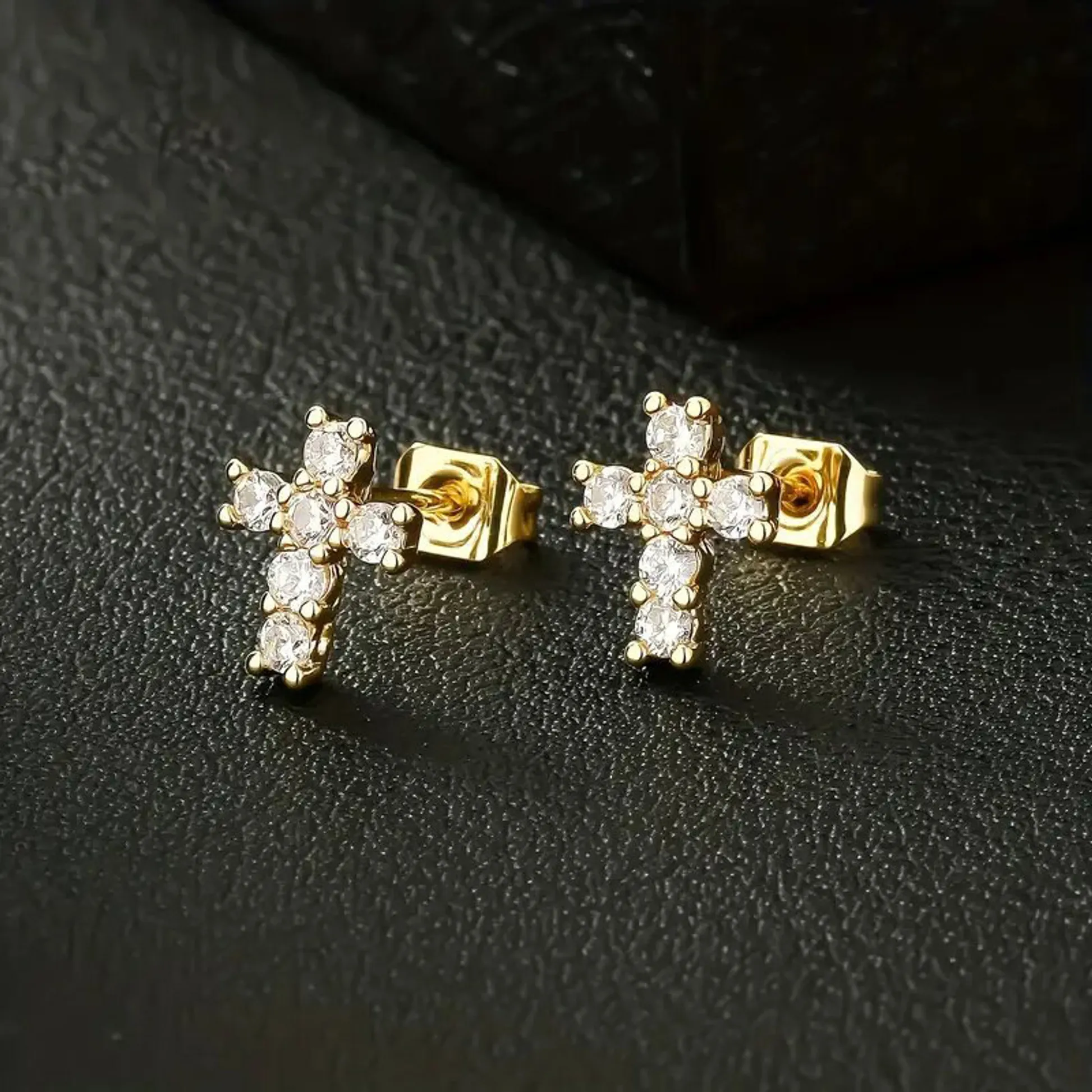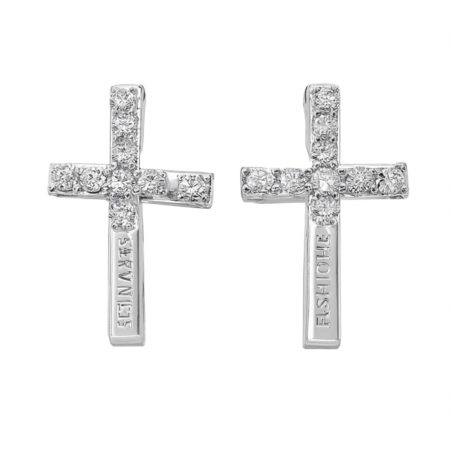 Fashion Cross Stud Earrings with Zircon Round Brilliant Cut Claw Setting – Religious Christian Unisex Jewelry