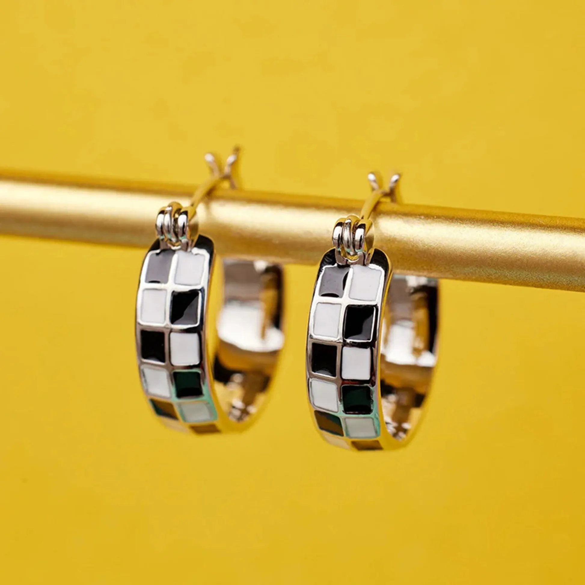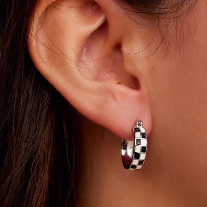 Product Introduction: Introducing the Ashs Eamce Huggie Earrings, a timeless piece of classic fashion jewelry designed for everyday elegance. Crafted with precision and attention to detail, these earrings feature a sleek geometric pattern with alternating black and white zircon stones set in a secure bezel setting. The polished white gold finish enhances their modern aesthetic, making them suitable for both casual and formal occasions. Core Features: Why Choose This Product: Ashs Eamce Huggie Earrings – White Gold Geometric Zircon Bezel Setting Unisex Classic Fashion Jewelry