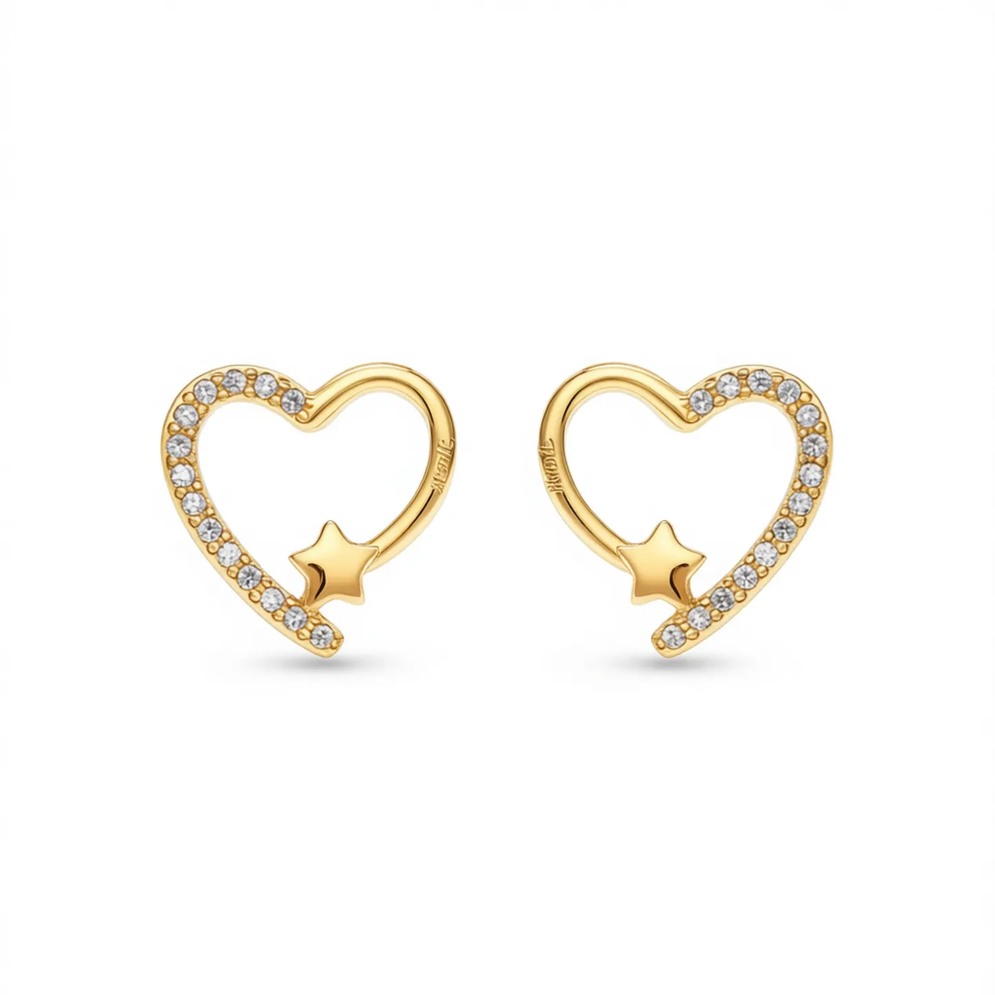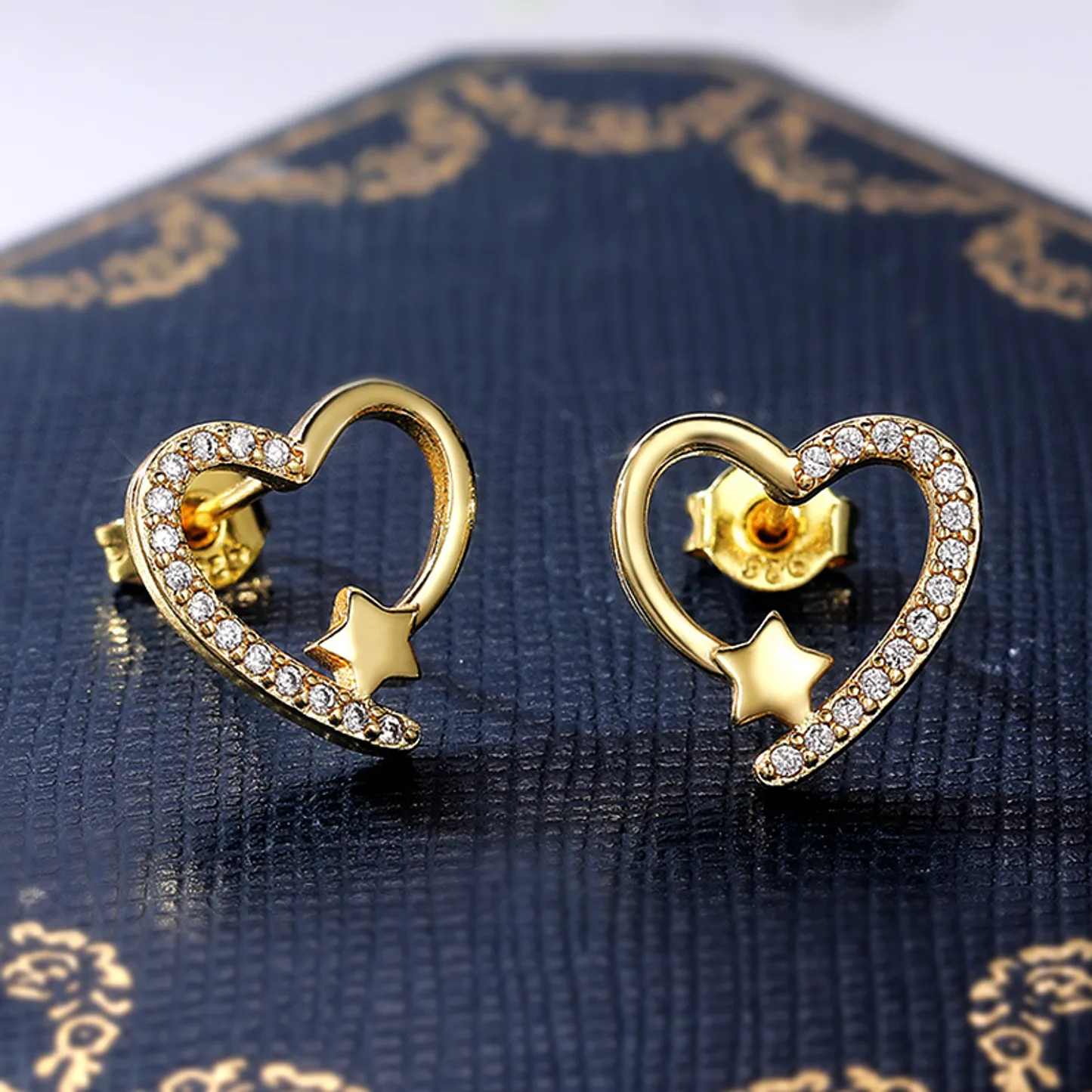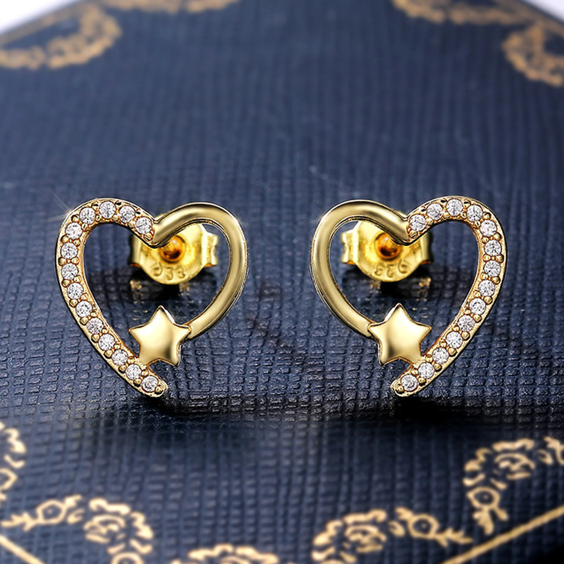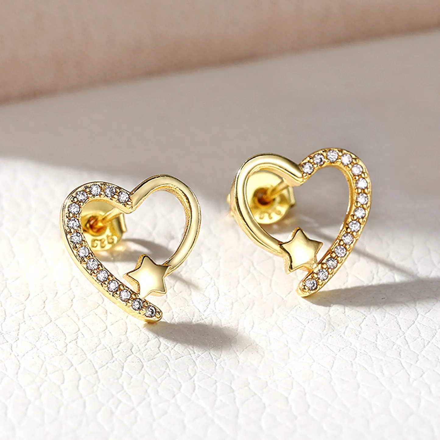 Golden Heart Stud Earrings with Star Crystal Rhinestones – Elegant and Charming Fashion Jewelry for Women Product Introduction: Elevate your everyday style with these exquisite golden heart stud earrings, beautifully designed for women who appreciate delicate yet expressive jewelry. Crafted with a charming heart shape and adorned with sparkling round brilliant-cut crystal rhinestones, these earrings combine timeless elegance with modern flair. A small star accent adds a unique touch of whimsy, making them ideal for both casual wear and special occasions. Core Features: Why Choose These Earrings: These earrings are more than just accessories—they're thoughtful gifts for birthdays, anniversaries, or as tokens of affection. Their lightweight design ensures comfort, while the high-quality materials maintain shine over time. Ideal for gifting or adding a sweet touch to any outfit, they represent a perfect balance of style, affordability, and durability.
