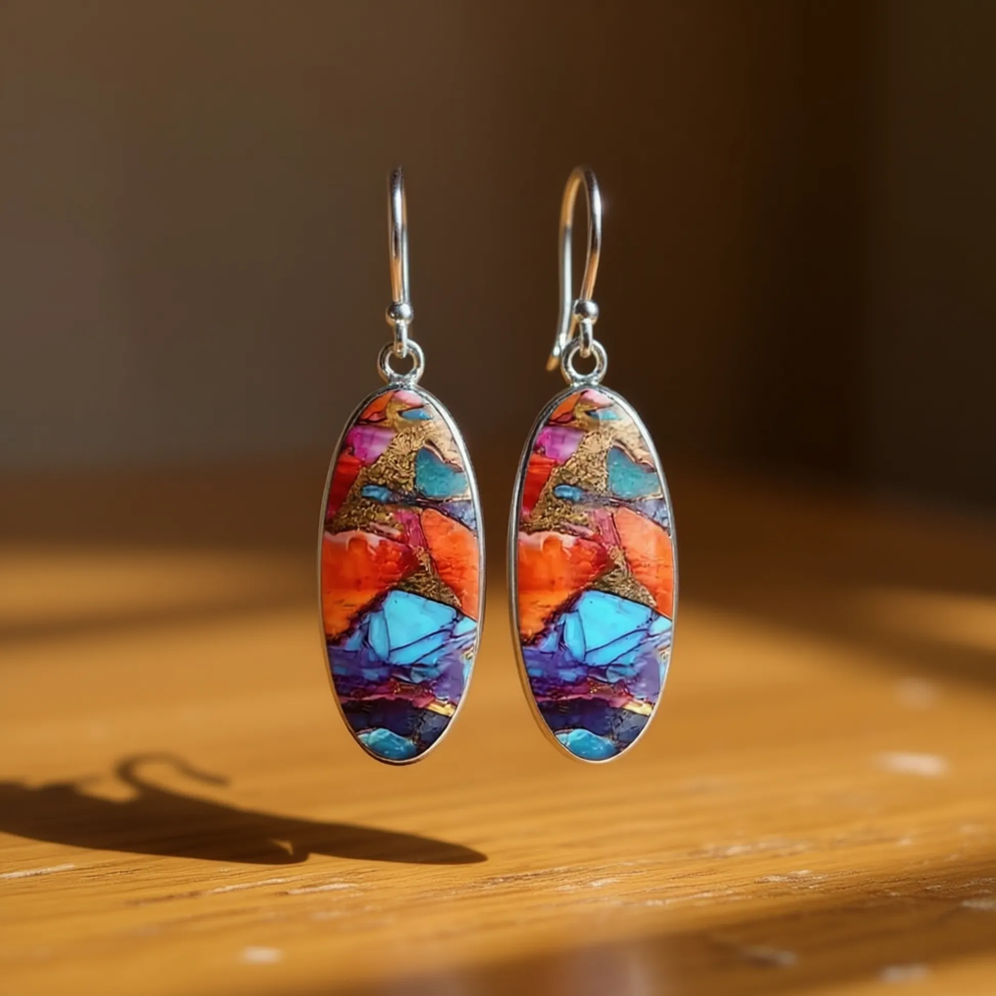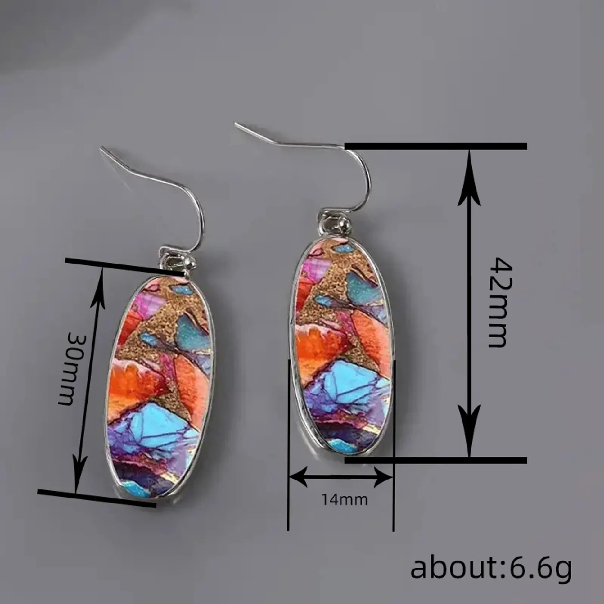 Bohemia Drop Earrings – Elegant Silver Plated Oval Resin Jewelry for Women These stylish drop earrings feature an oval design with a vibrant, multicolored resin inlay that mimics the natural beauty of gemstones. Crafted with a silver-plated finish over zinc alloy, they offer a luxurious look with long-lasting durability. The bezel setting securely holds the colorful resin centerpiece, ensuring both safety and elegance. Key Features: Why Choose These Earrings?