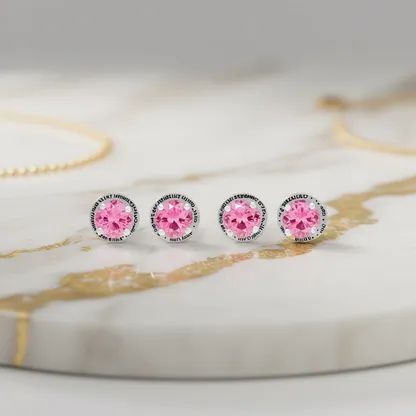 Color White gold with pink diamonds materialtype white gold mainstone pink diamonds diamondshape Round Brilliant Cut shape\pattern Other earringstype Stud Earrings occasion Gift inlaytechnology Bezel Setting nameorwords WHITE GOLD WITH PINK DIAMONDS gender Women's jewelrytype Earrings jewelrymainmaterial Alloy plating White gold style Classic