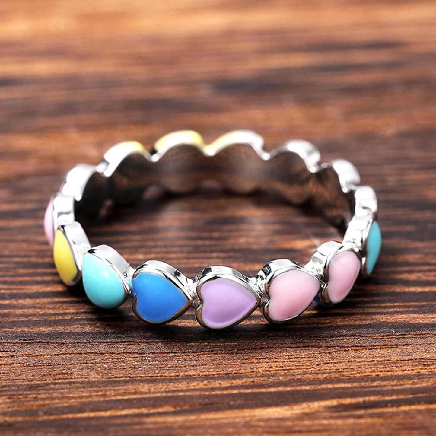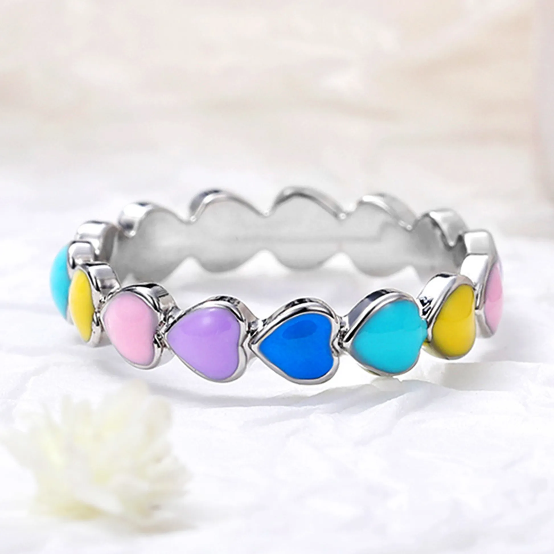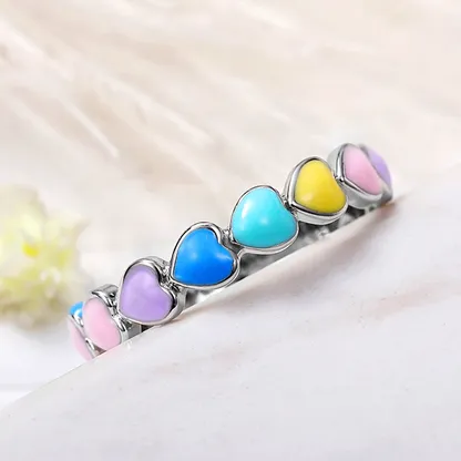 Product Introduction: This stylish F943 bangle features a delicate and charming design, combining a sleek silver-tone metal band with vibrant heart-shaped inlays. Each heart is carefully embedded in pastel hues including pink, yellow, blue, and purple, creating a playful yet elegant aesthetic suitable for everyday wear or special occasions. Core Features: Why Choose This Product: The F943 bangle is perfect for gifting or personal use, offering a blend of fashion and sentiment. Its versatile design pairs well with casual or semi-formal attire, making it a timeless addition to any jewelry collection.F943 - Elegant Heart-Shaped Colorful Bangle