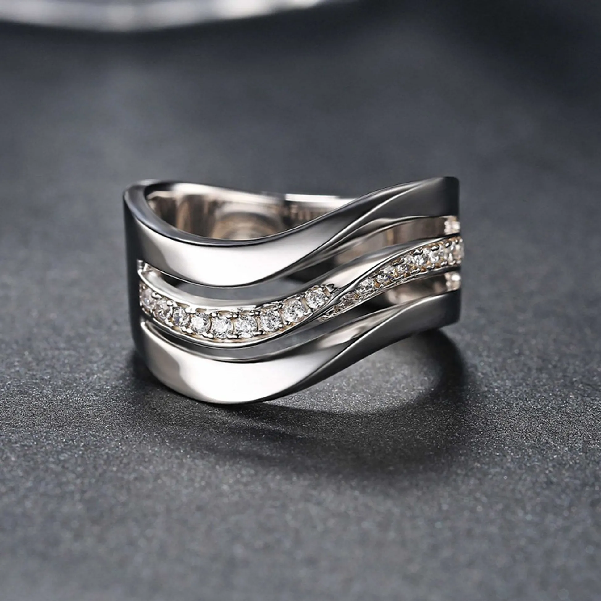 Product Introduction: The F308 ring is a stunning piece of contemporary jewelry, designed with elegance and sophistication in mind. Featuring a sleek, wave-like band structure, this ring combines modern aesthetics with timeless appeal. Crafted from high-quality metal, it offers a durable and refined finish suitable for both everyday wear and special occasions. Core Features: Reasons to Purchase:
