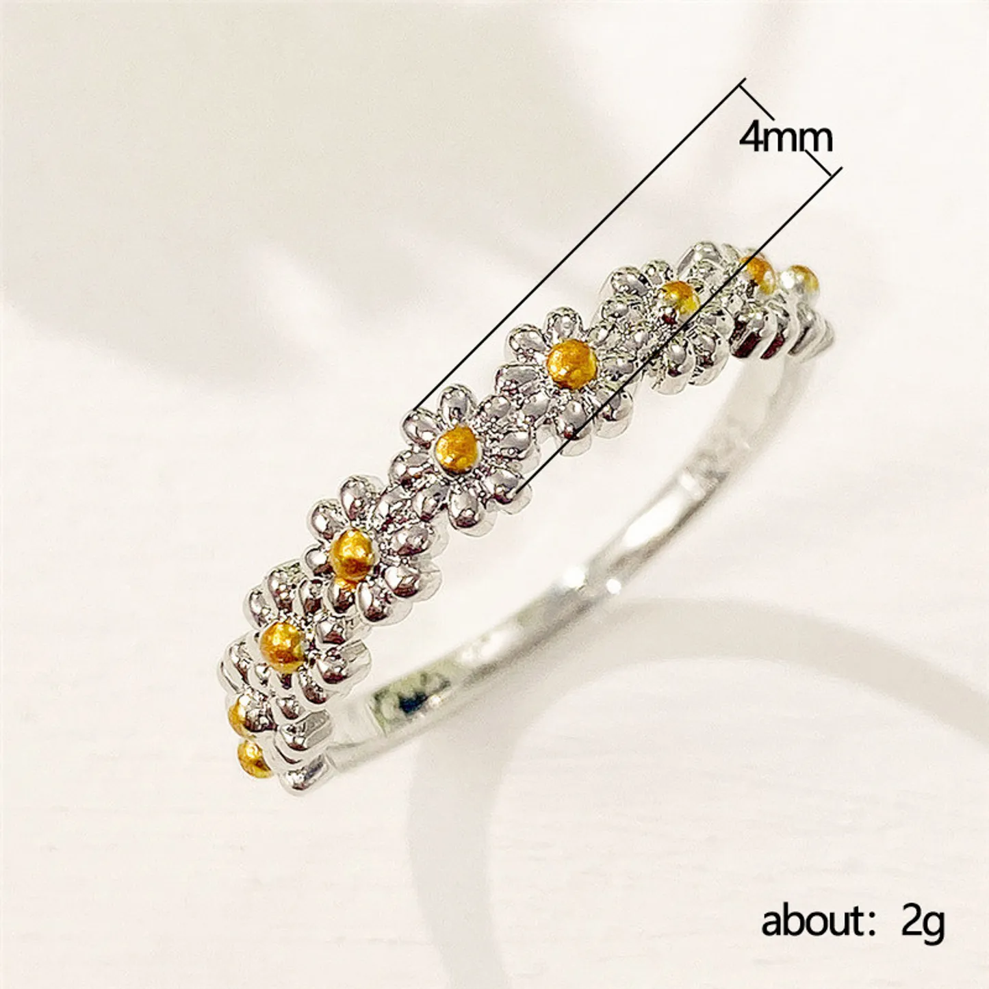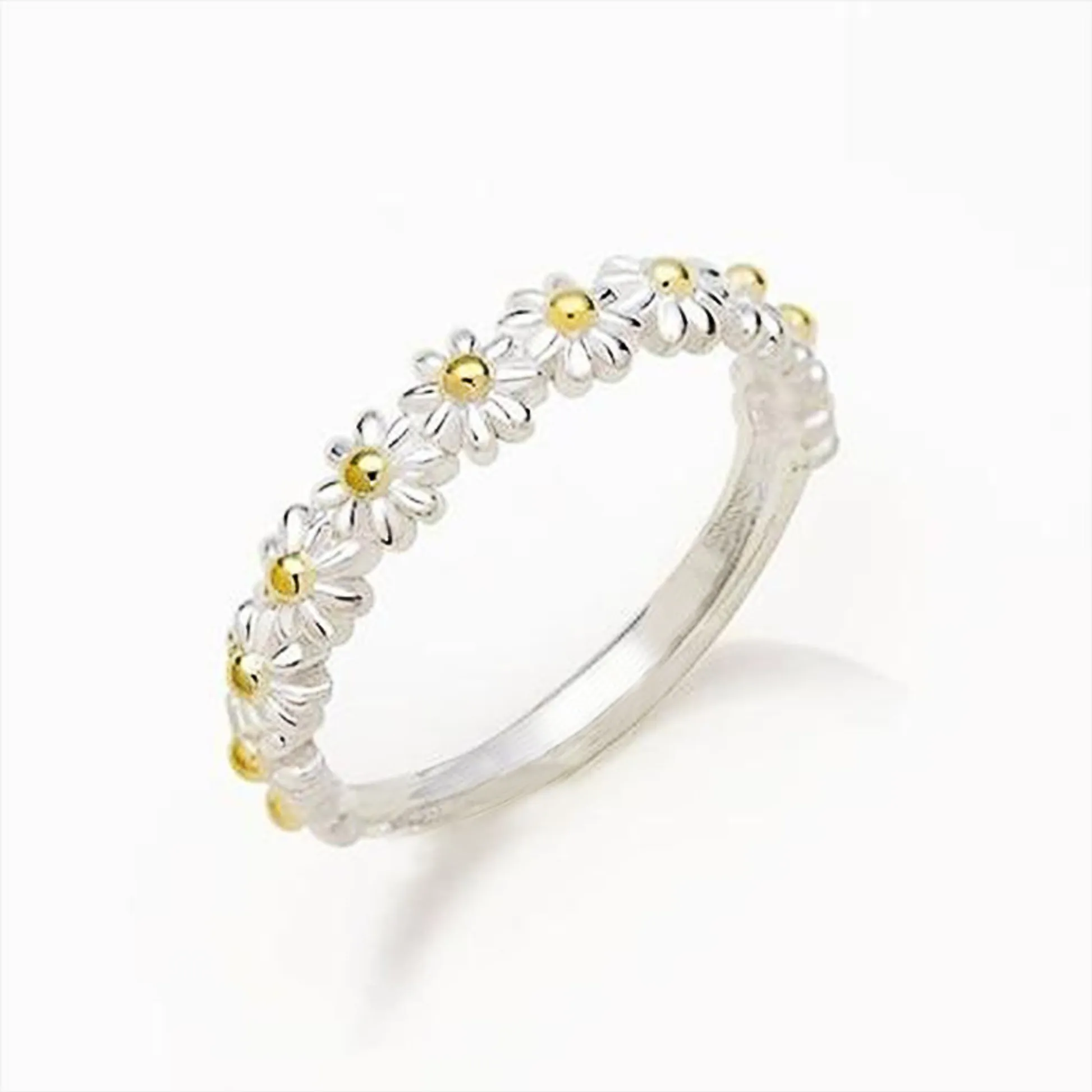 Product Introduction: Elevate your jewelry collection with this elegant floral-inspired ring, crafted with meticulous attention to detail. Featuring a delicate band adorned with charming daisy motifs, each flower is highlighted by a golden center, creating a harmonious blend of silver and gold tones. This timeless piece is perfect for those who appreciate subtle beauty and feminine design. Core Features: Reasons to Purchase: