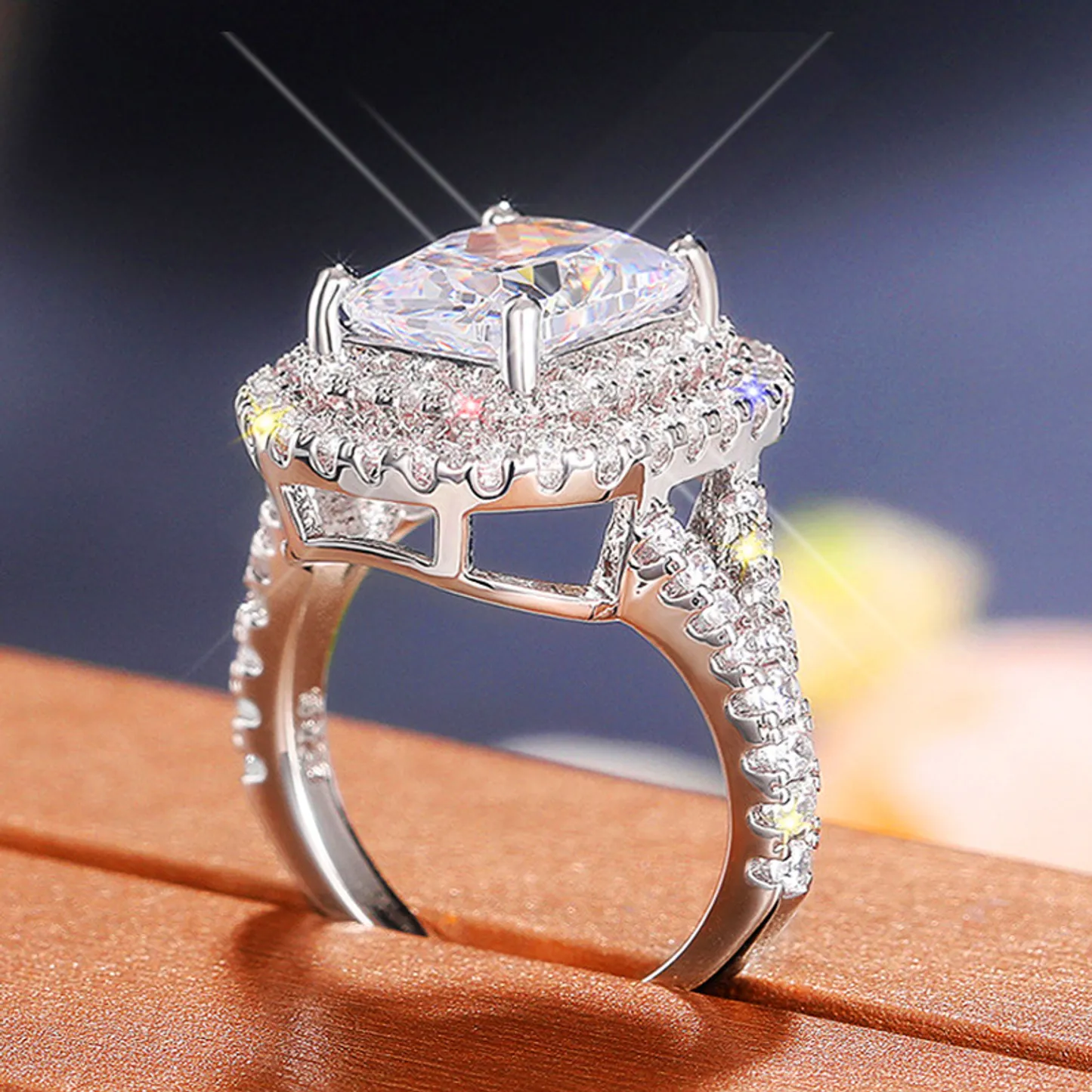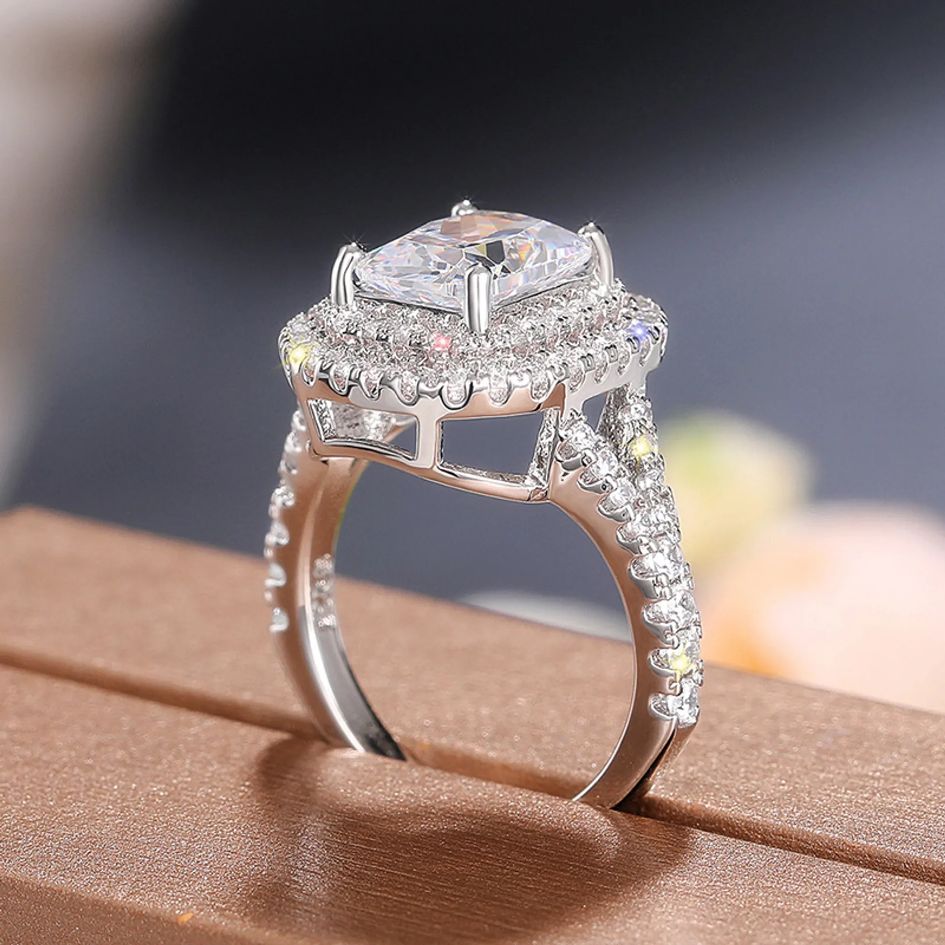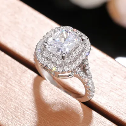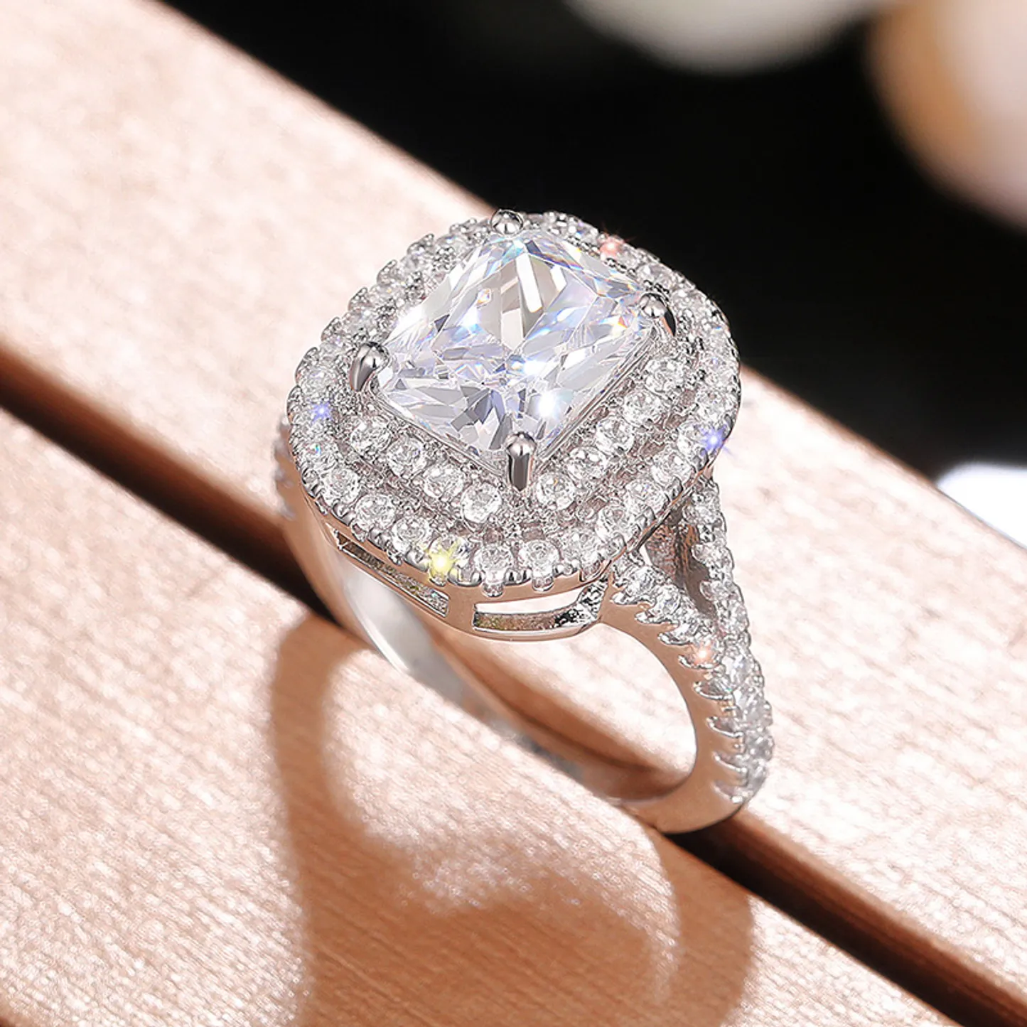 Product Introduction: This elegant ring features a stunning rectangular-cut central stone, surrounded by a halo of meticulously set smaller gemstones, creating a radiant and luxurious appearance. Crafted with precision, the design highlights brilliance and sophistication, making it an ideal choice for special occasions or as a timeless addition to any jewelry collection. Core Features: Reasons to Purchase: