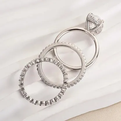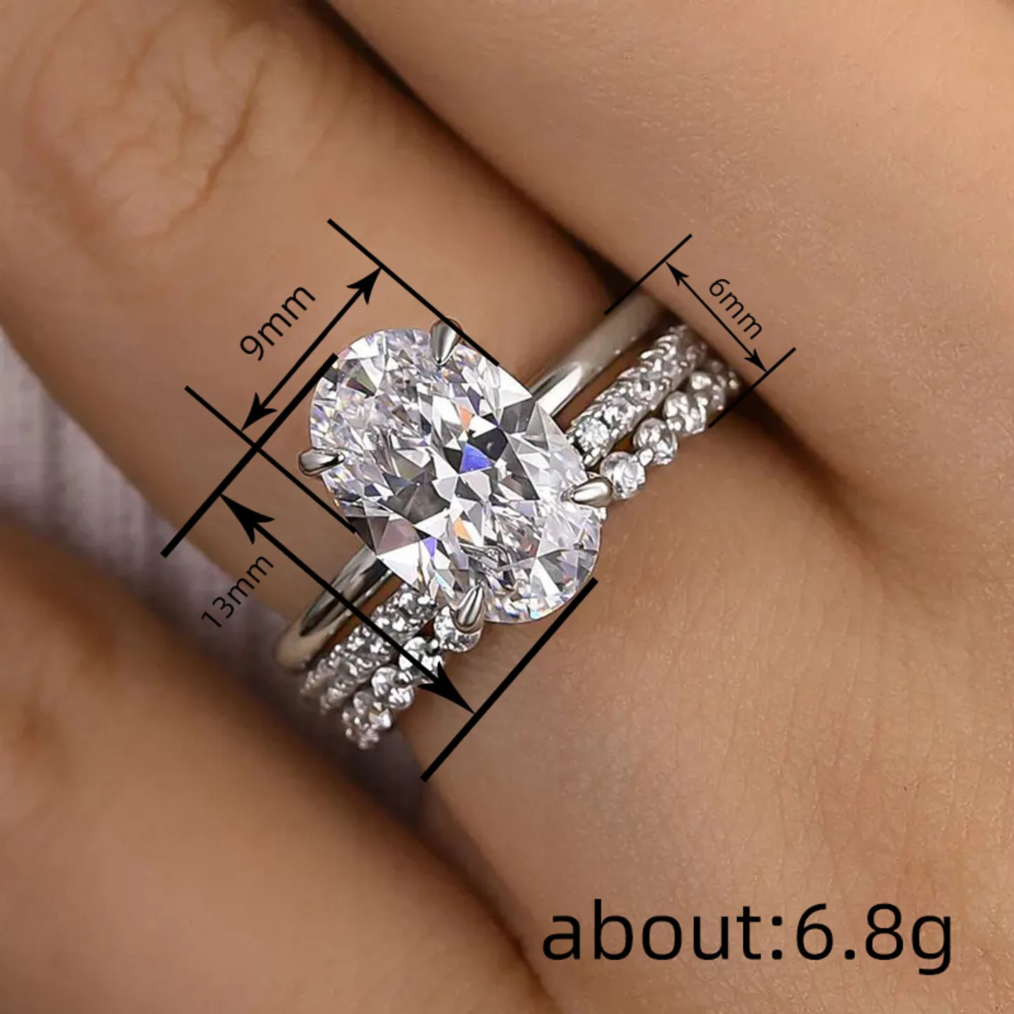 Product Introduction: This elegant ring set features a stunning oval-cut central stone, meticulously crafted to capture and reflect light with brilliance. Designed with precision, the ring showcases a timeless style that complements any occasion. The accompanying band enhances the overall sparkle, creating a harmonious and luxurious look. Core Features: Reasons to Purchase: