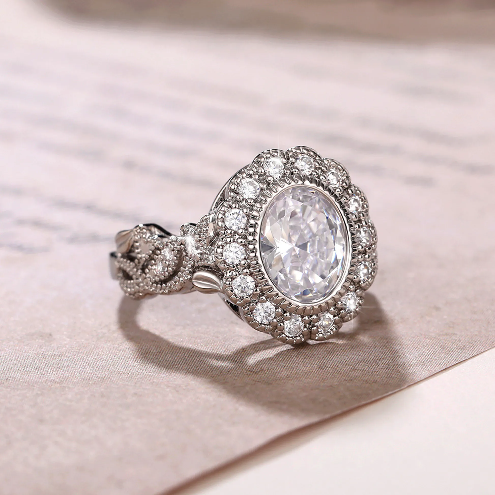 Product Introduction: This exquisite F1770 ring features a stunning central crystal stone set in a detailed, vintage-inspired metal band. Crafted with precision, the ring showcases an ornate floral design along the shank, complemented by delicate pavé detailing that enhances its timeless elegance. Ideal for special occasions or as a statement piece, this ring combines classic beauty with modern craftsmanship. Core Features: Why Choose This Ring: The F1770 ring stands out for its refined craftsmanship and graceful design. Its combination of elegant proportions and detailed artistry makes it suitable for both formal wear and everyday style. With durable materials and thoughtful construction, this ring offers lasting value and visual appeal. Perfect for gifting or personal adornment, it represents a blend of tradition and contemporary fashion.F1770 - Elegant Crystal Ring with Vintage Design