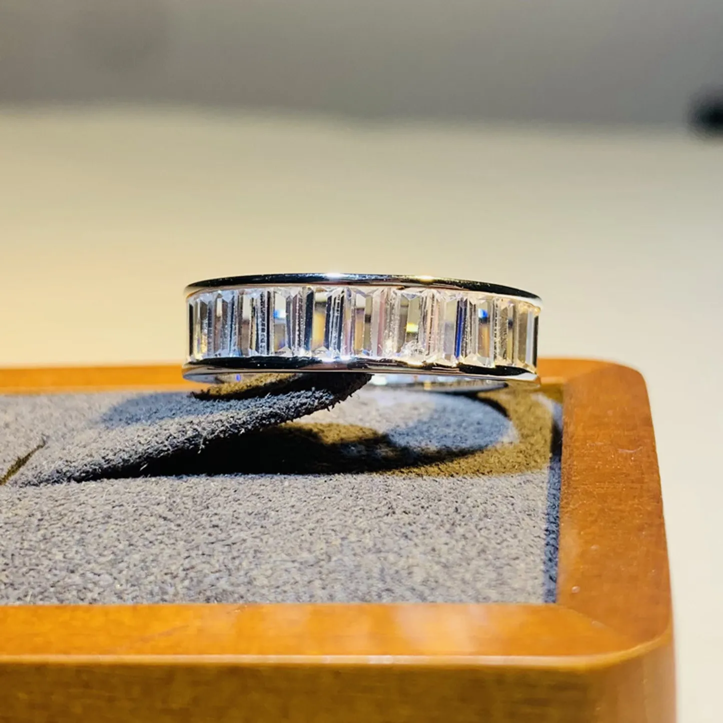 Product Introduction: The Q668 ring is a timeless piece of fine jewelry, featuring a sleek and sophisticated design crafted with precision. This elegant band showcases a continuous row of baguette-cut stones, meticulously set to enhance brilliance and sparkle. Ideal for those who appreciate understated luxury, the ring exudes refined style suitable for both everyday wear and special occasions. Core Features: Reasons to Purchase:Q668 - Elegant Baguette Diamond Band Ring