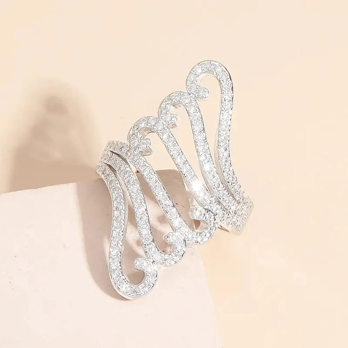 Elegant and Timeless Design – Q290 Crystal-Encrusted Ring This exquisite ring, model Q290, features a delicate and flowing open-band design adorned with sparkling crystals that catch the light from every angle. Crafted with precision, it combines modern elegance with timeless charm, making it a versatile accessory for various occasions. Core Features: Why Choose This Ring: