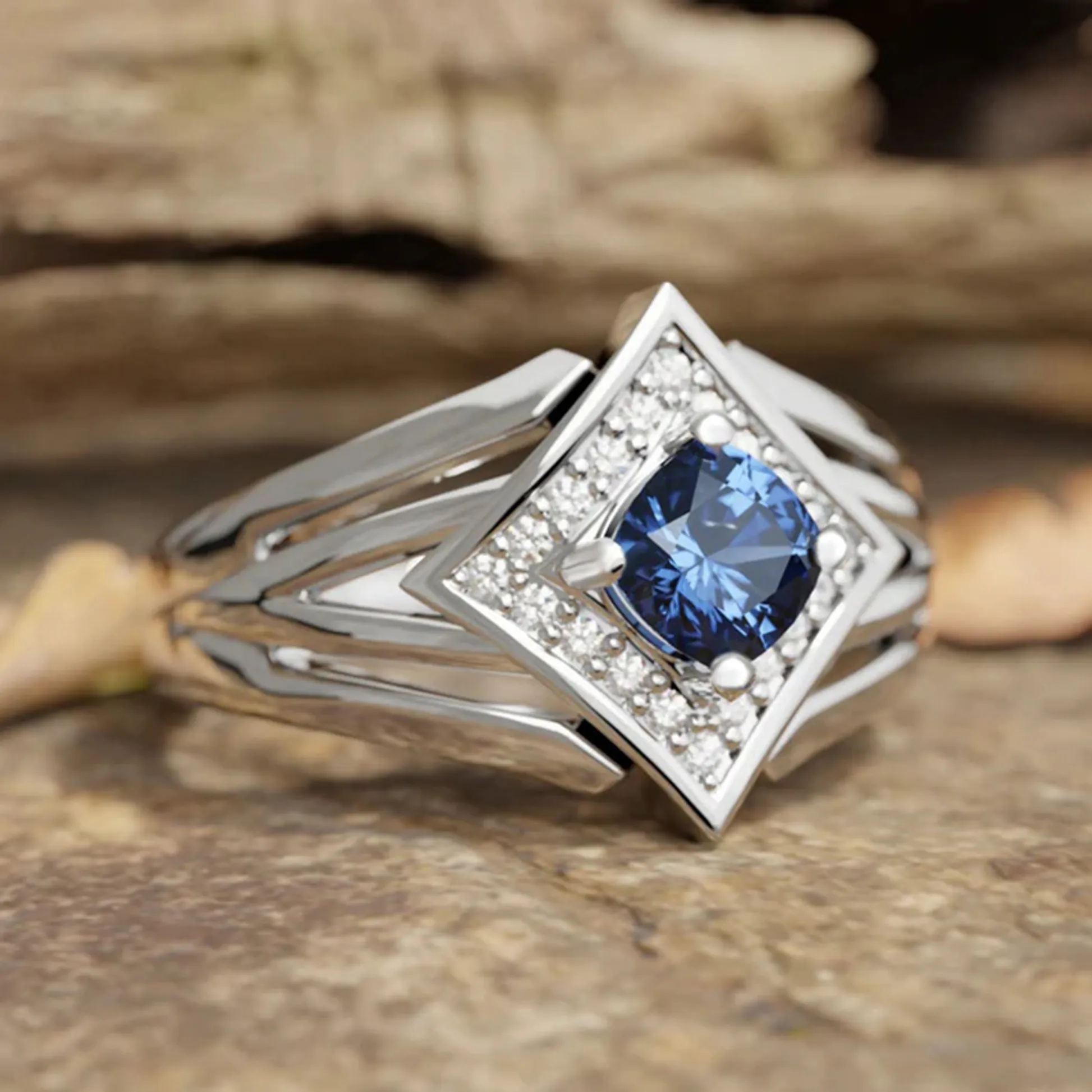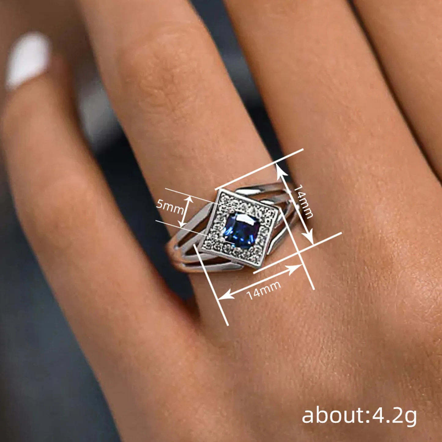 Product Introduction: This exquisite T0853 ring features a stunning cushion-cut blue sapphire as its centerpiece, elegantly framed by a halo of sparkling diamonds. Crafted with precision, the ring showcases a sophisticated geometric design with a diamond-encrusted square setting that enhances the brilliance of the central gemstone. The band's multi-strand structure adds a modern touch, combining timeless elegance with contemporary style. Core Features: Reasons to Purchase:T0853 - Elegant Blue Sapphire and Diamond Ring