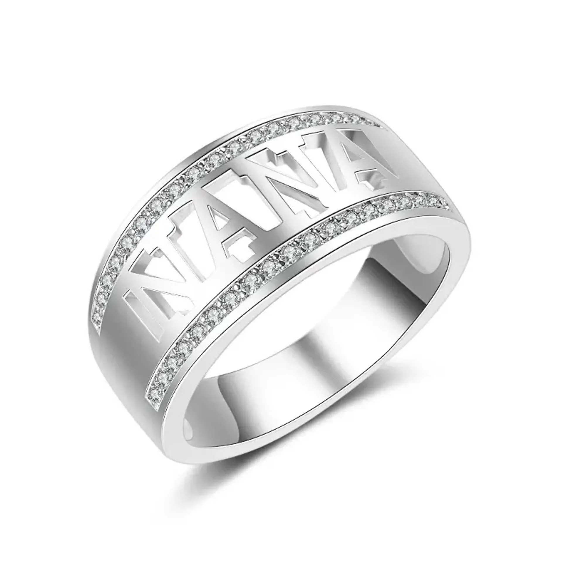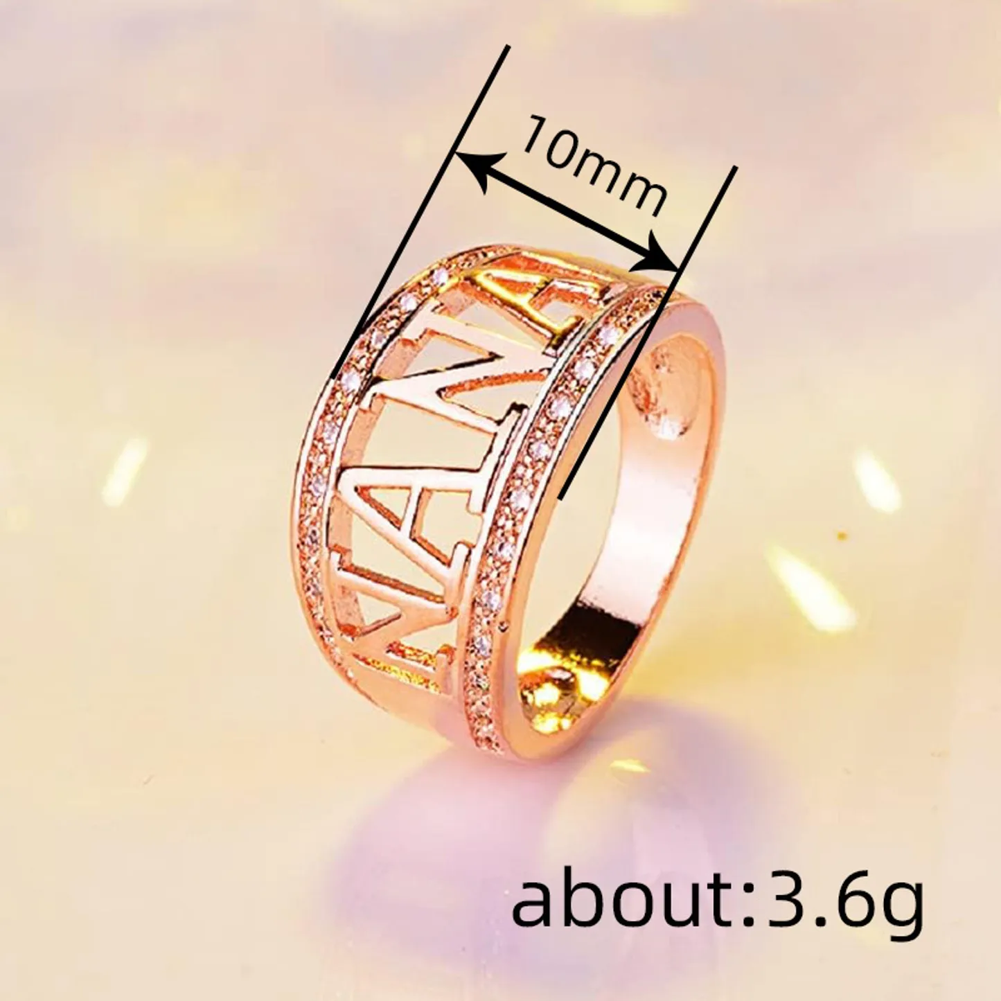 Product Introduction: This elegant rose gold-plated ring features a bold, personalized design with the word "NANA" prominently displayed in a cut-out style. Crafted with attention to detail, it combines sentimental value with modern fashion, making it an ideal gift for grandmothers or as a meaningful keepsake. Core Features: Reasons to Purchase: