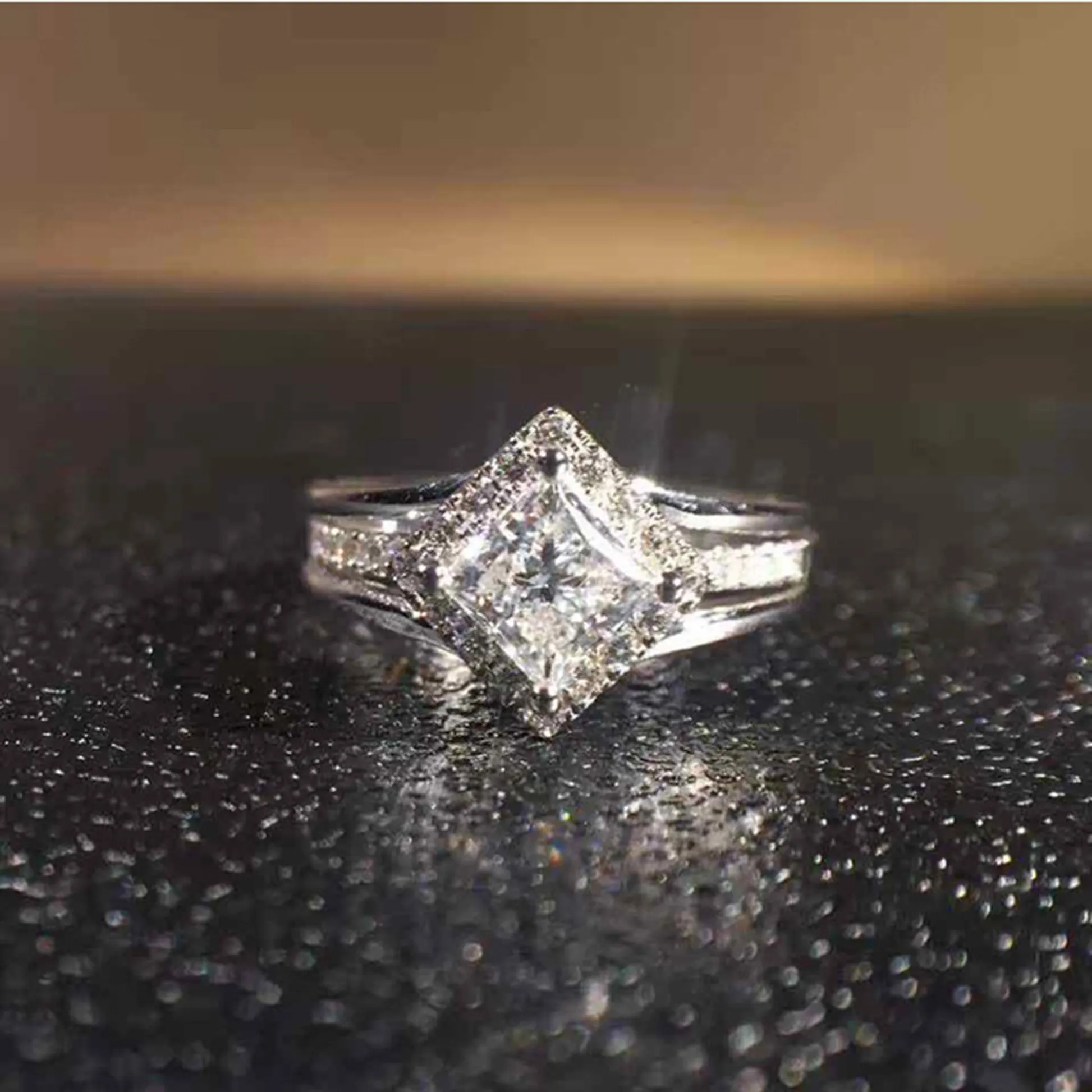 Product Introduction: This elegant Q646 engagement ring features a stunning princess-cut center diamond, set in a classic white gold band. Designed for timeless beauty, it captures the essence of romantic sophistication with its precise craftsmanship and refined details. Core Features: Reasons to Choose This Ring:Q646 Princess Cut Diamond Engagement Ring