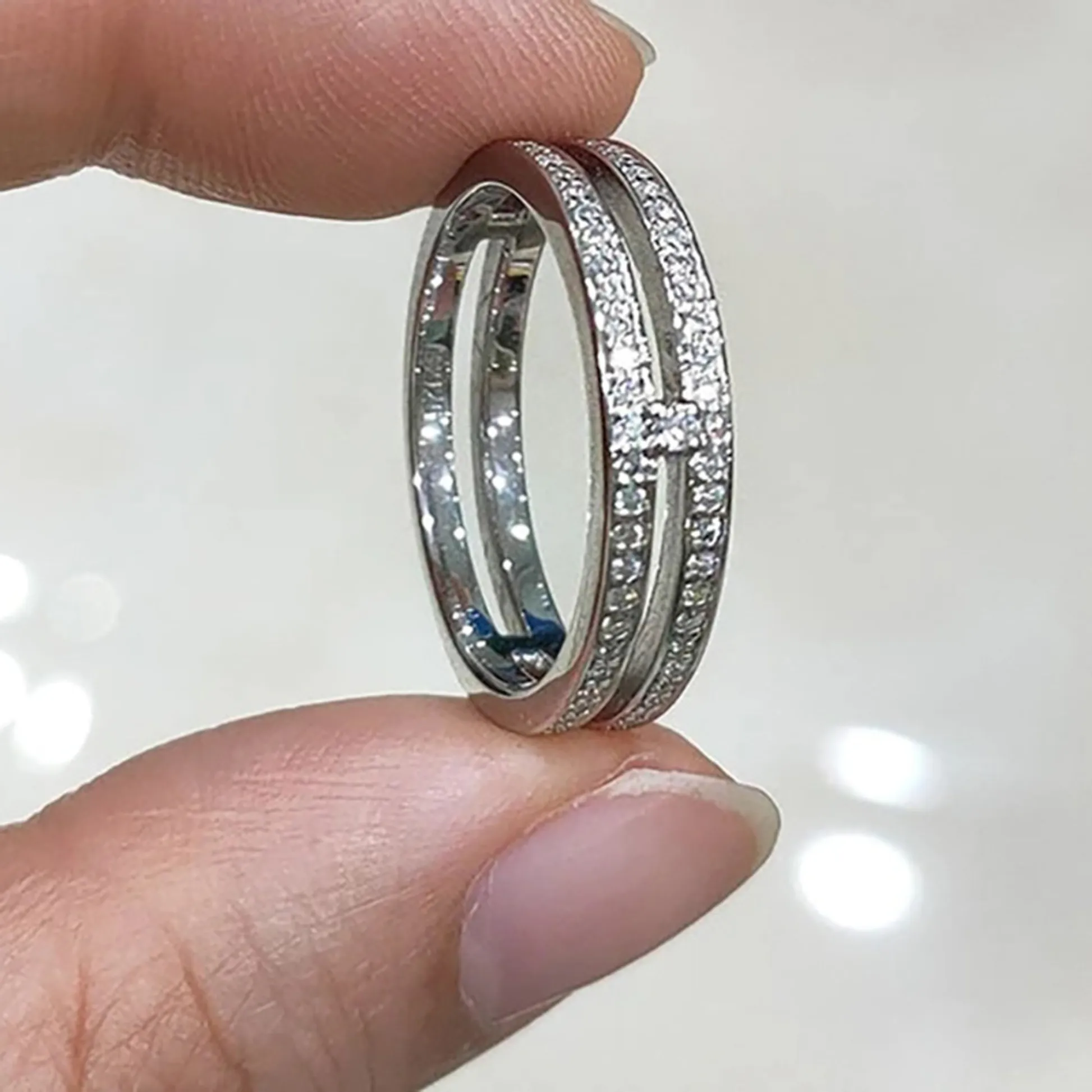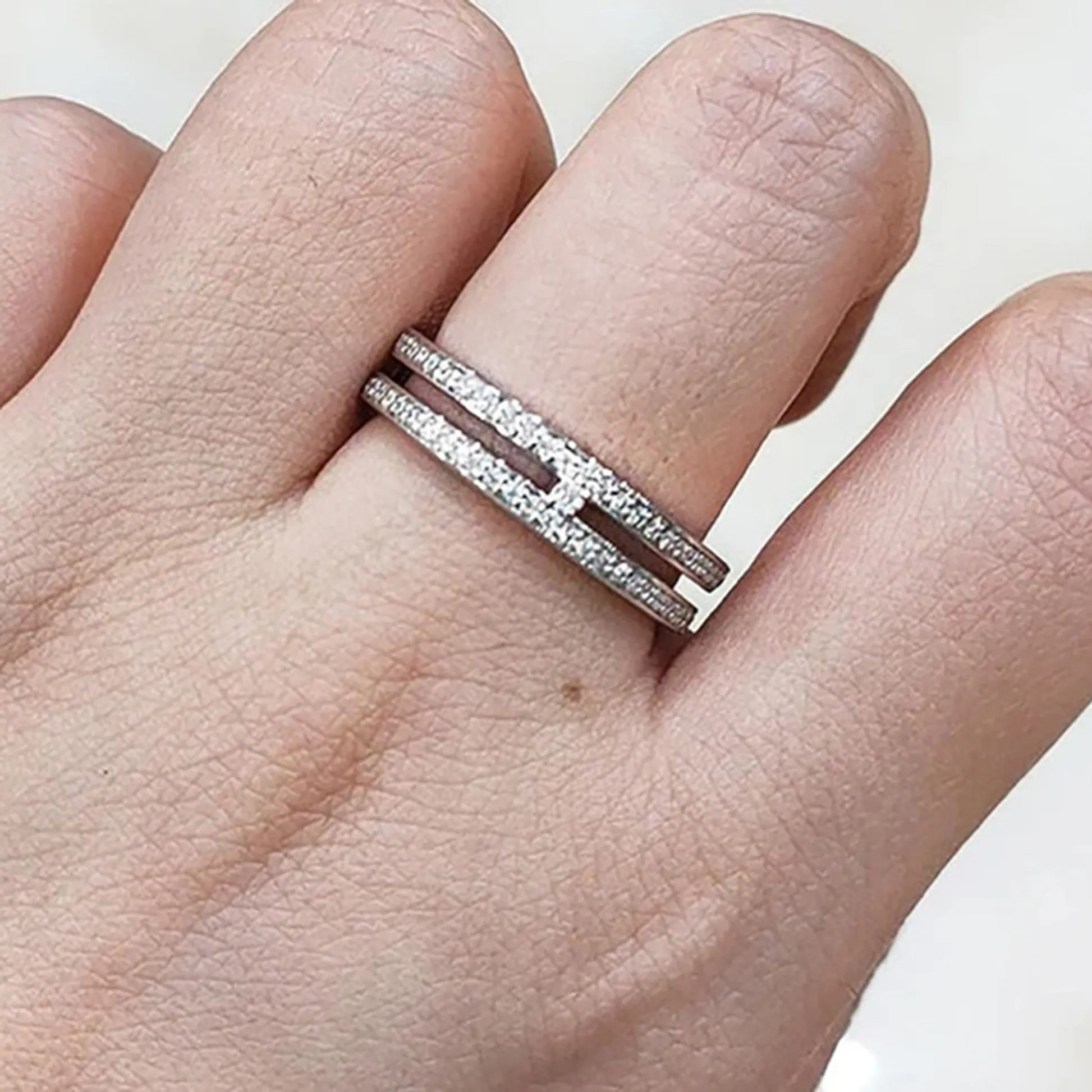 Product Introduction: This elegant ring features a sophisticated dual-band design with a delicate pavé setting of sparkling stones, creating a refined and modern look. Crafted with precision, it offers a timeless appeal suitable for various occasions, from everyday wear to special events. Core Features: Reasons to Purchase: