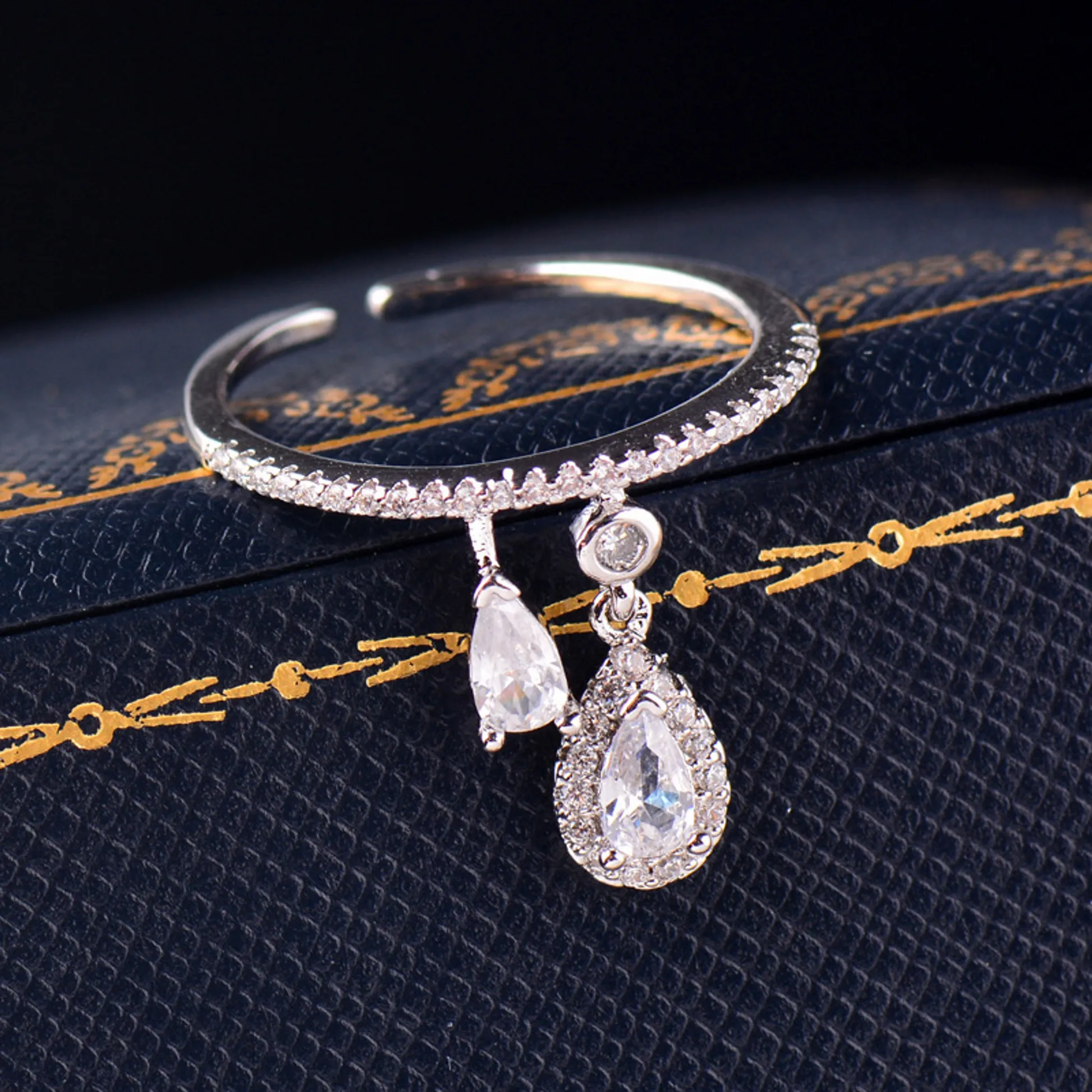 Product Introduction: Elevate your jewelry collection with this exquisite Q167 ring, designed to combine elegance and sophistication. Featuring a delicate band adorned with sparkling crystals, this ring showcases a refined teardrop pendant that gracefully dangles from the center, adding a touch of glamour to any ensemble. The adjustable sizing ensures a comfortable fit for various finger sizes, making it a versatile choice for everyday wear or special occasions. Core Features: Reasons to Purchase: