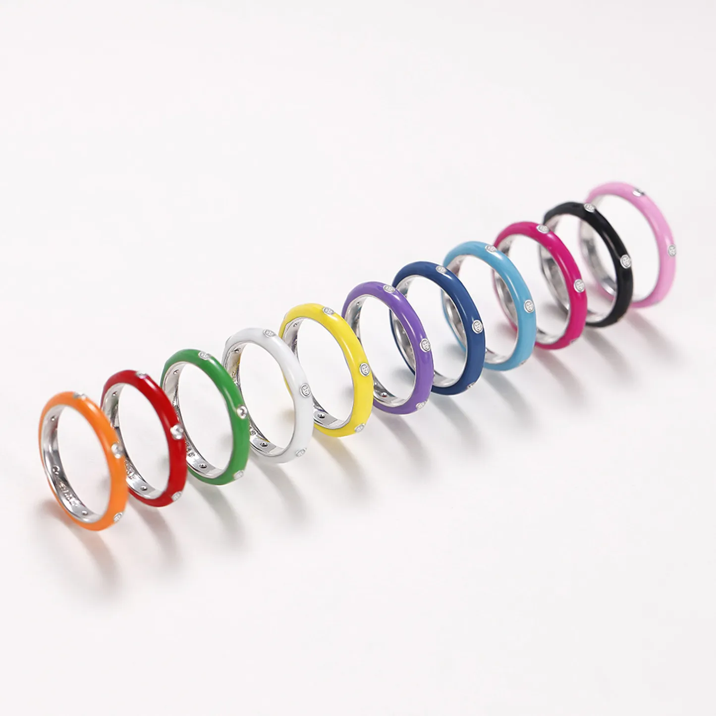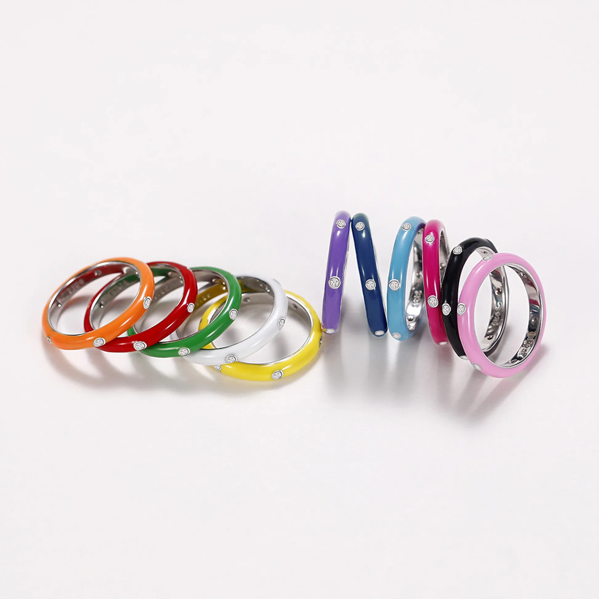 Product Introduction: Elevate your style with the F1720 collection of elegant and vibrant enamel rings. Crafted with precision, these rings feature a sleek, polished finish and are available in a variety of bold colors to suit any fashion preference. Each ring is adorned with small, sparkling stones that add a touch of sophistication and shine. Core Features: Reasons to Purchase: