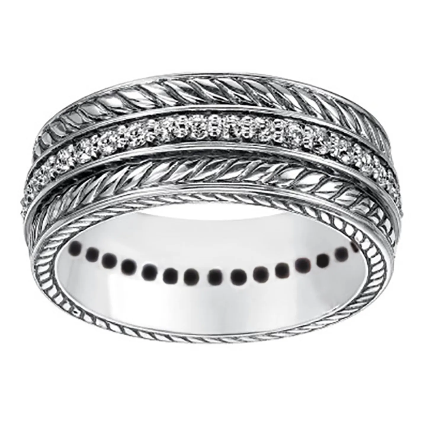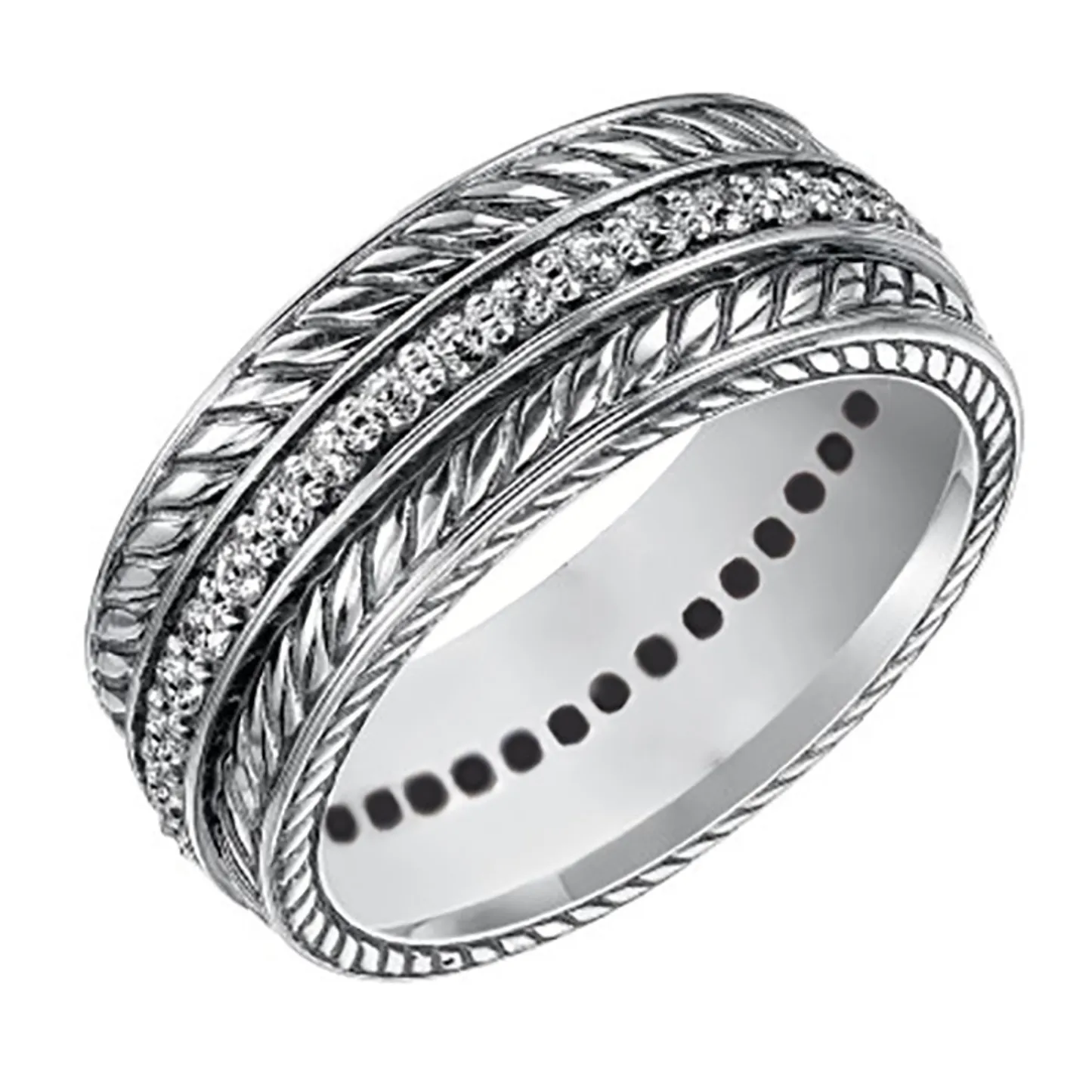 Product Introduction: This exquisite F289 ring features a sophisticated design combining delicate craftsmanship with timeless elegance. Crafted with precision, the band showcases a refined leaf-pattern engraving that wraps around its exterior, adding depth and texture to the overall aesthetic. A central row of sparkling diamonds enhances the ring’s brilliance, making it suitable for formal occasions or as a statement piece in any jewelry collection. Core Features: Reasons to Purchase:F289 - Elegant Diamond Band Ring with Intricate Leaf Pattern