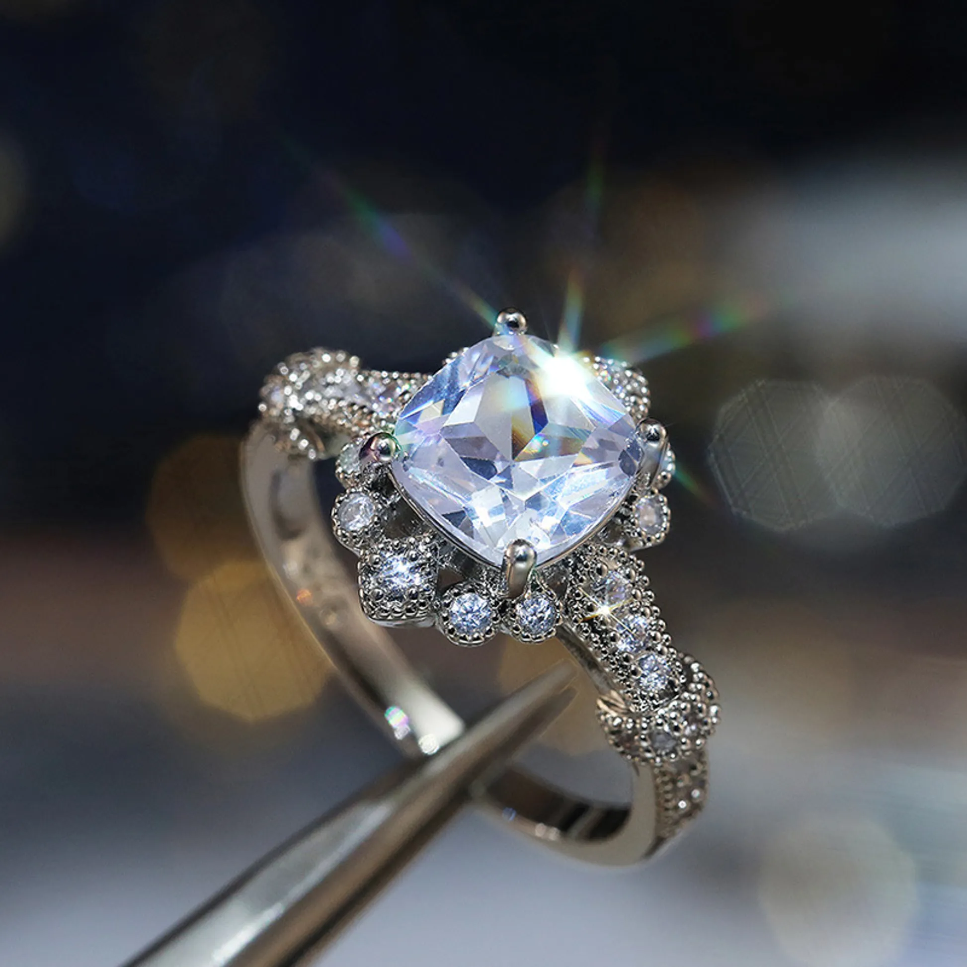 Product Introduction: This exquisite F198 engagement ring features a stunning central diamond set in a delicate halo design, surrounded by meticulously arranged accent stones. Crafted with precision, the ring combines timeless elegance with modern sophistication, making it an ideal choice for those seeking a refined and luxurious piece of jewelry. Core Features: Reasons to Choose This Ring:F198 - Elegant Diamond Engagement Ring