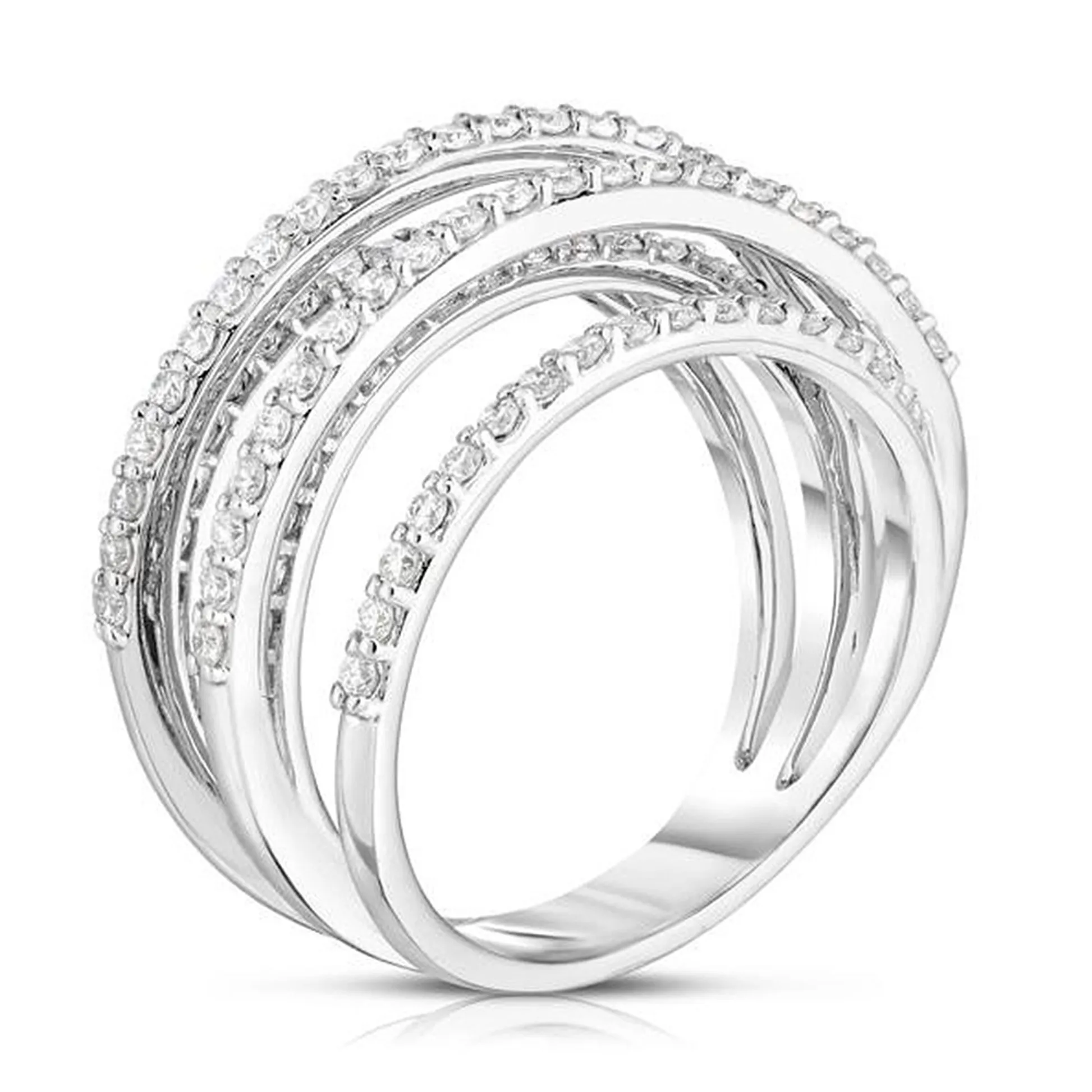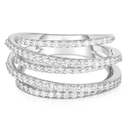 Elegant Multi-Band Diamond Ring – F1577 Discover timeless sophistication with the F1577 multi-band diamond ring, a stunning piece crafted to enhance any ensemble. Featuring a delicate design of intertwined bands, each adorned with a continuous line of sparkling round-cut diamonds, this ring combines modern elegance with classic refinement. Core Features: Why Choose This Ring: