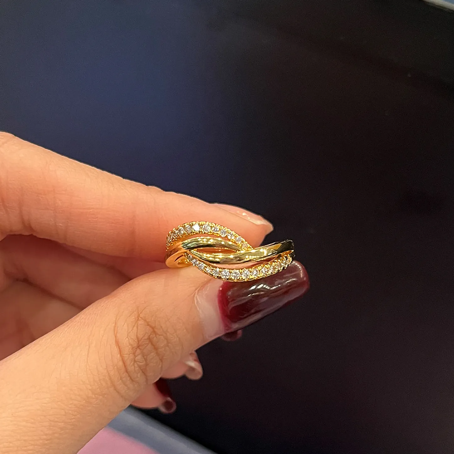 Product Introduction: This elegant ring, model F1430, showcases a sophisticated design with intertwined gold bands and a dazzling array of small, meticulously set gemstones. Crafted to highlight timeless beauty and refined craftsmanship, it is ideal for those who appreciate subtle luxury in their accessories. Core Features: Reasons to Buy:
