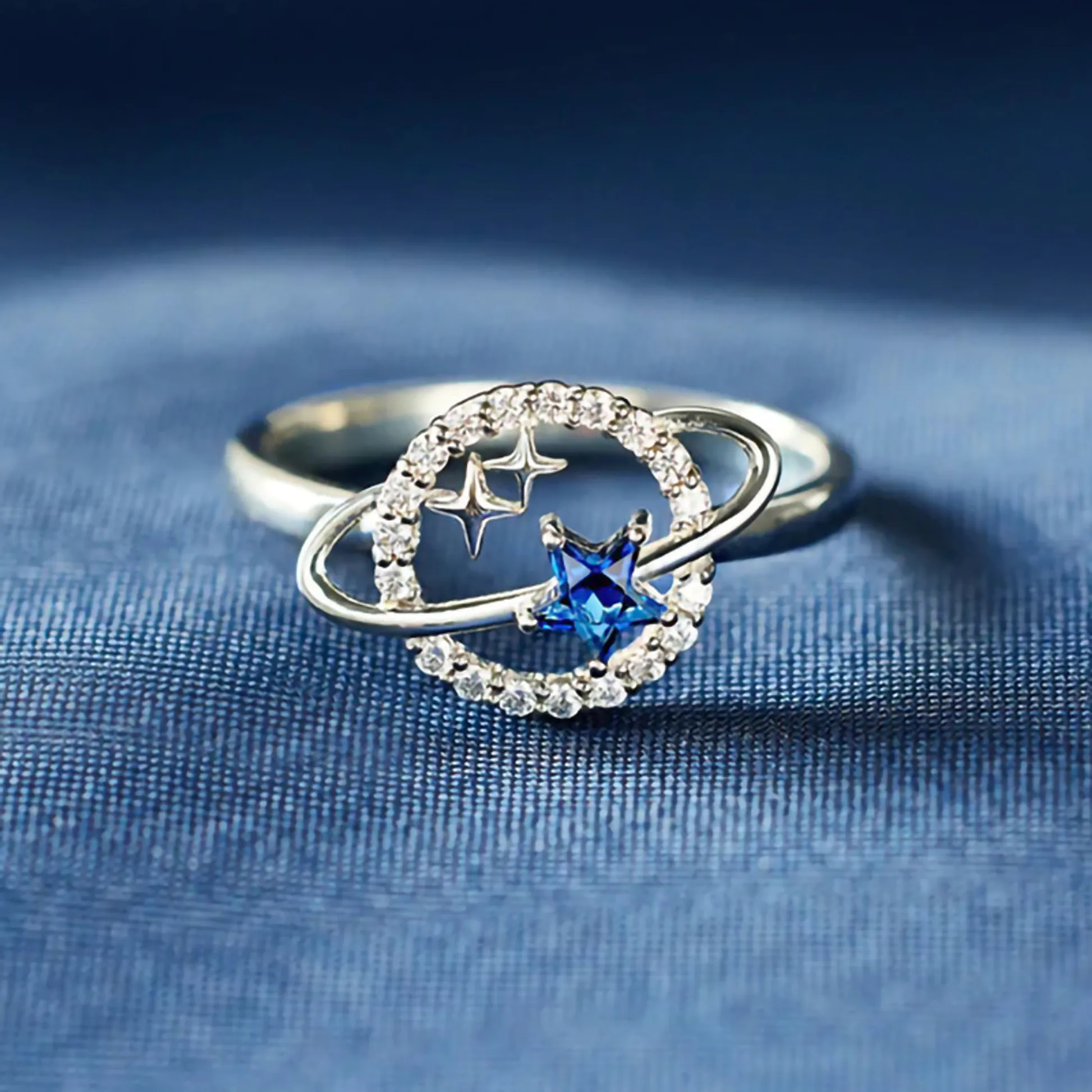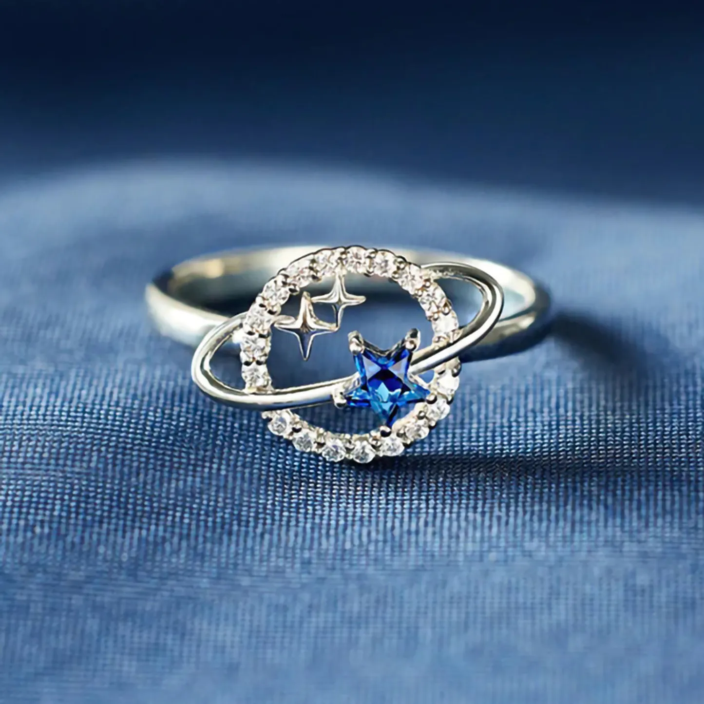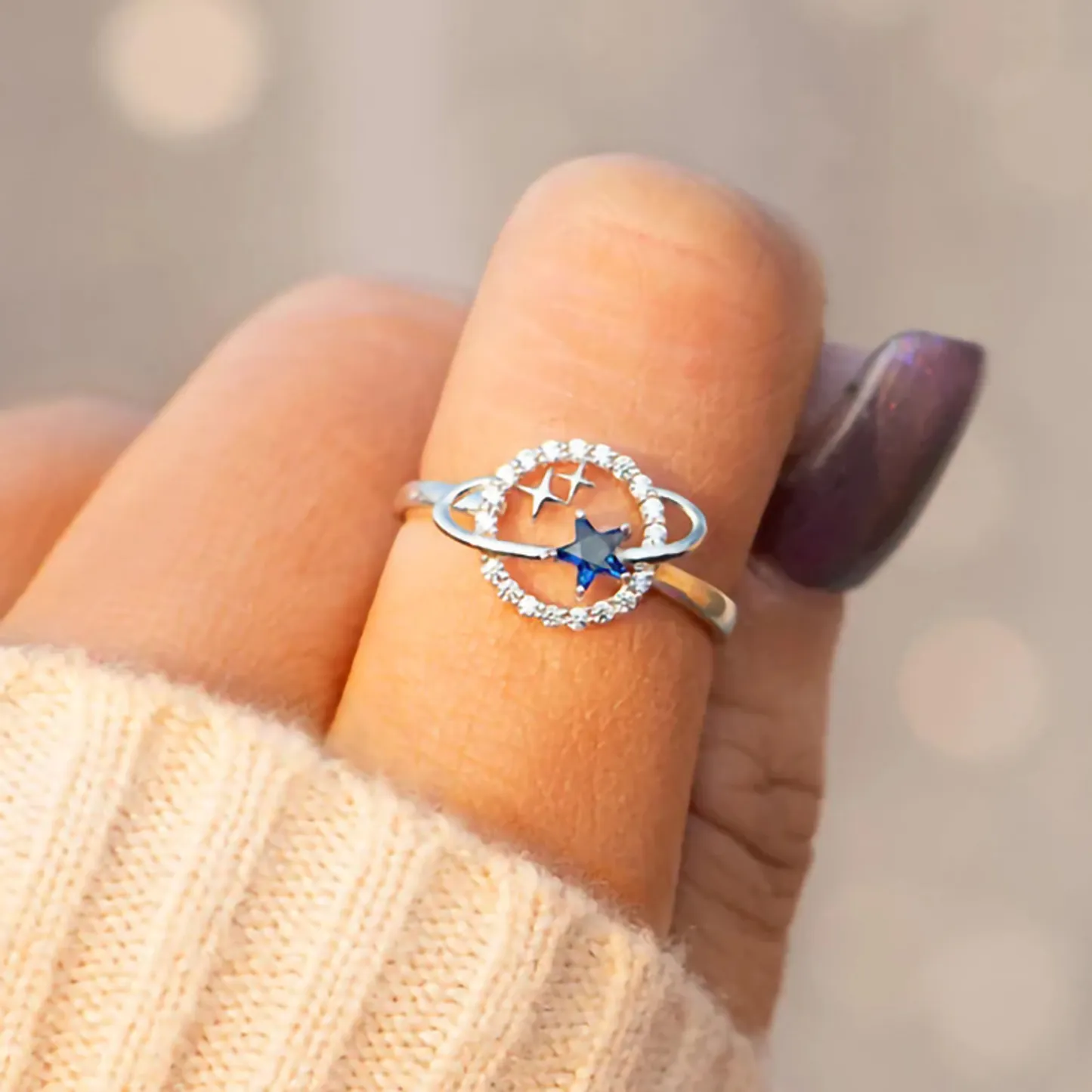 Product Introduction: This exquisite ring features a celestial-inspired design, combining delicate craftsmanship with symbolic elegance. Crafted with a minimalist yet eye-catching aesthetic, the ring showcases a central star motif surrounded by a halo of sparkling stones, evoking the beauty of the night sky. The interlocking band design adds a modern touch, making it suitable for both casual wear and special occasions. Core Features: Reasons to Purchase:T0161 - Elegant Starry Sky Design Ring