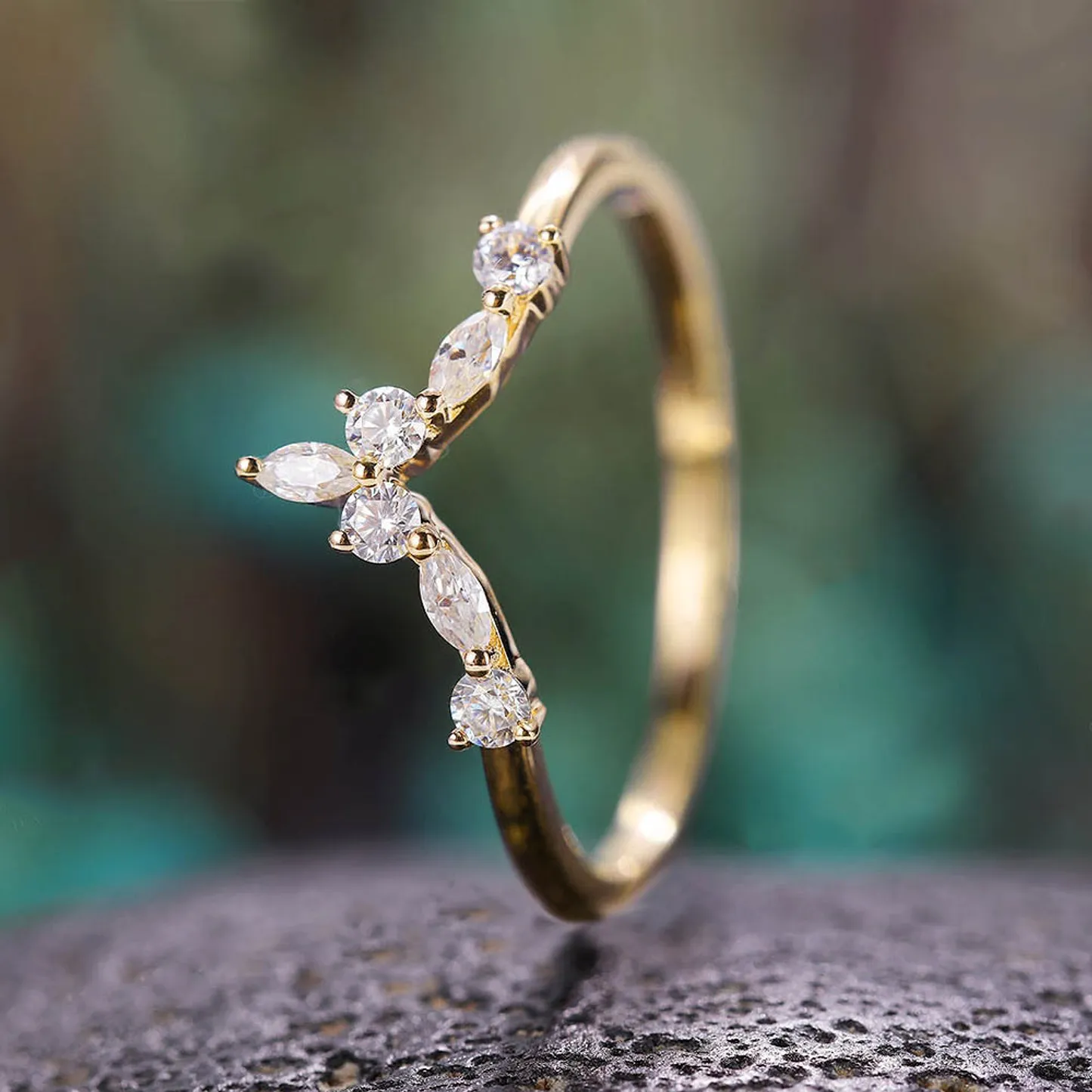Product Introduction: This exquisite F1525 ring showcases a delicate and sophisticated design, crafted with precision to highlight the brilliance of its gemstones. Featuring a graceful V-shaped setting, the ring is adorned with round and marquise-cut diamonds that catch the light from every angle. The rose gold band adds a warm, luxurious touch, making it an ideal choice for those who appreciate timeless elegance. Core Features: Why Choose This Ring: The F1525 ring combines artistry and craftsmanship, delivering a unique blend of modern style and classic charm. Its balanced proportions and sparkling details make it a standout accessory for any jewelry collection. With its elegant form and high-quality materials, this ring is designed to be cherished for years to come.F1525 - Elegant Diamond Ring in Rose Gold