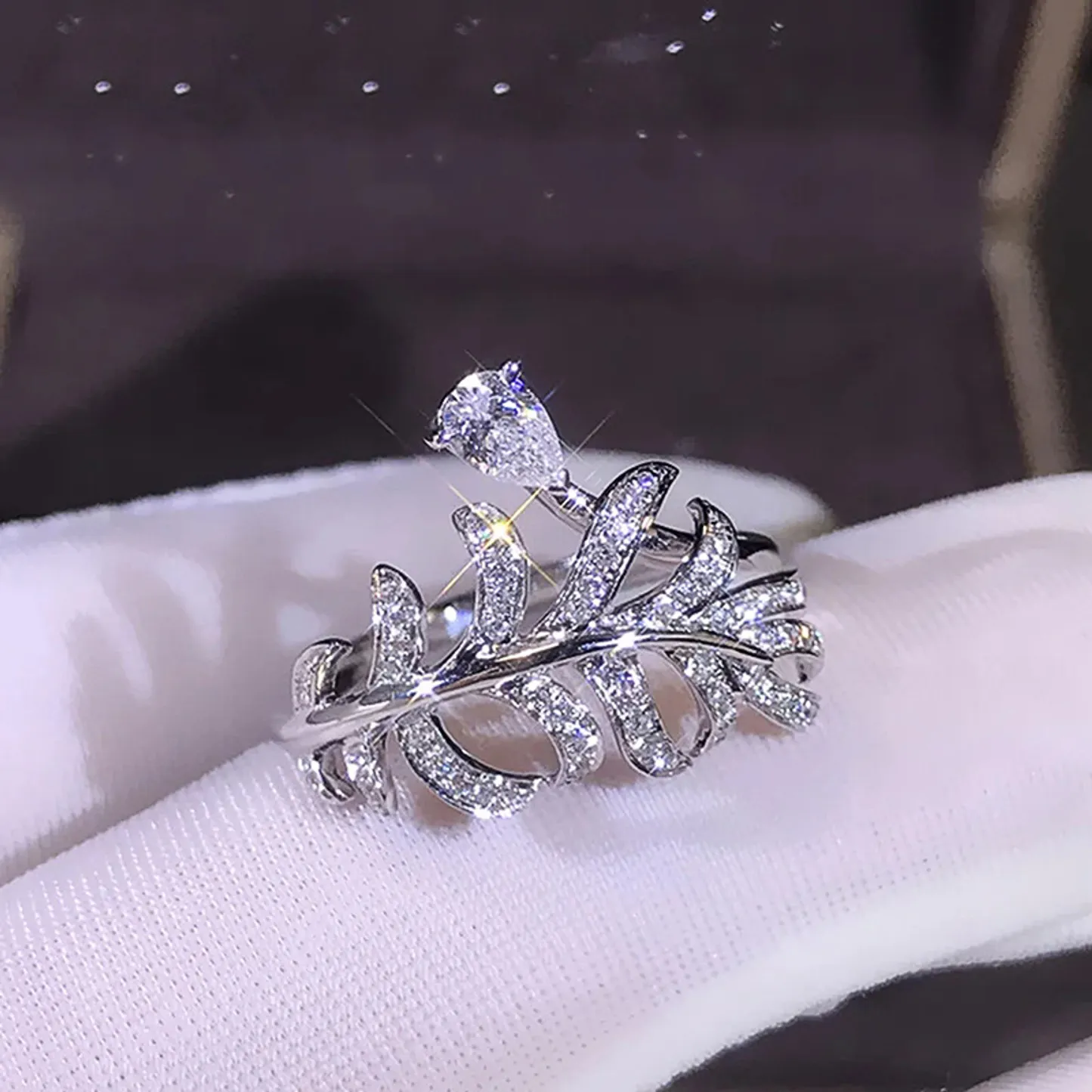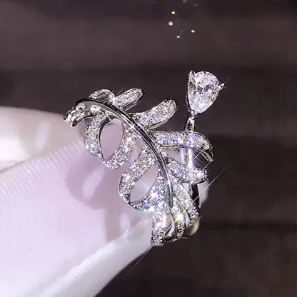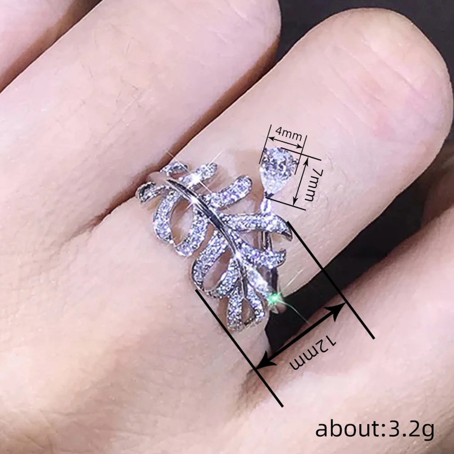 Product Introduction: This exquisite T0854 ring features a delicate leaf-inspired design, crafted with precision to capture the natural elegance of foliage. The piece is adorned with numerous sparkling stones that enhance its radiant appearance, making it a refined choice for special occasions or everyday wear. Core Features: Reasons to Purchase:T0854 Diamond-Encrusted Leaf Design Ring
