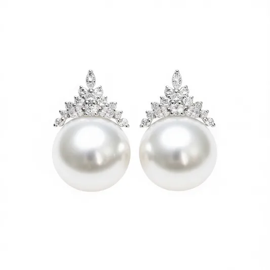 E3632 Akoya Pearl Stud Earrings White Gold AAA Round Cultured Pearl Crown Design Wedding Jewelry Women's 18K Gold