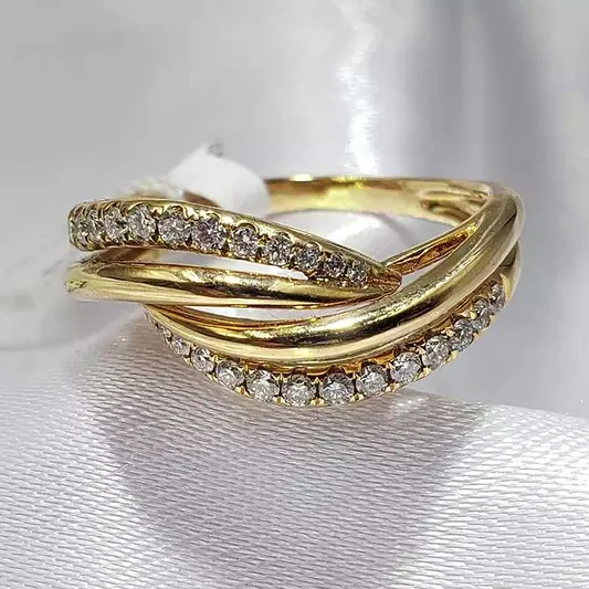 F1430 Women's Yellow Gold Eternity Band Ring Round Brilliant Cut Diamond Channel Setting Geometric Wedding Fine Rings