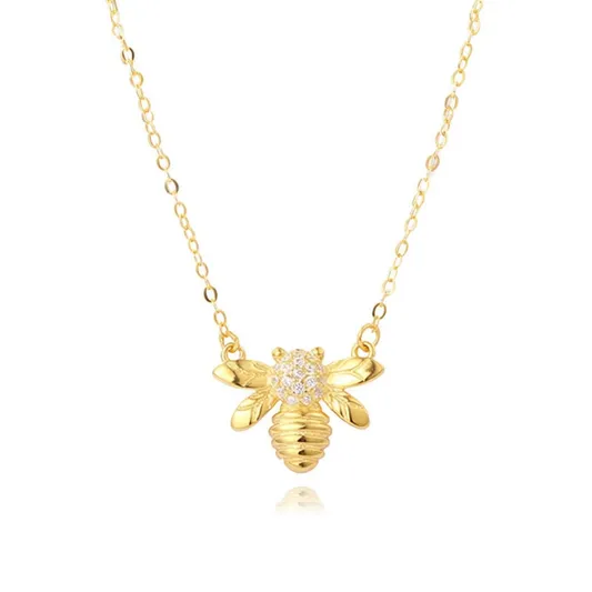 Gold Plated Bee Pendant Necklace With Crystal Rhinestone Insect Design For Everyday Wear Unisex Cute Style Link Chain