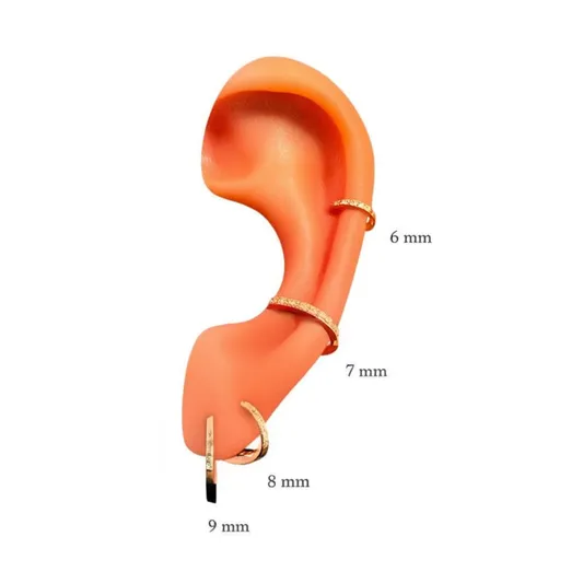 Golden Alloy Cuff Earrings 6 7 8 9 Mm Geometric Crystal Rhinestone Bezel Setting Unisex Trendy Fashion Jewelry