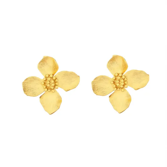 Golden Flower Stud Earrings For Women Classic Alloy Jewelry Gold Plated Fashion Earrings