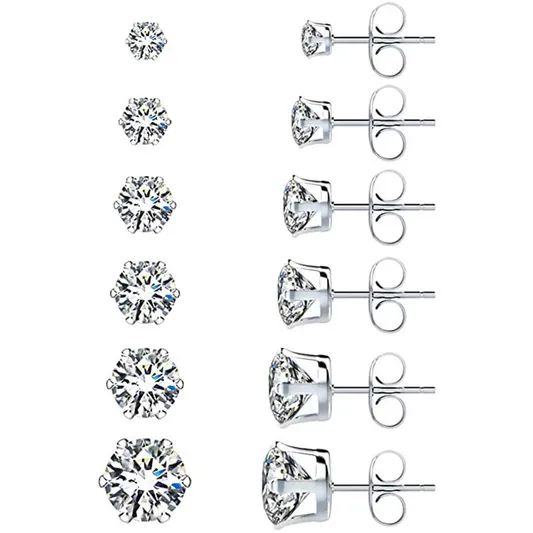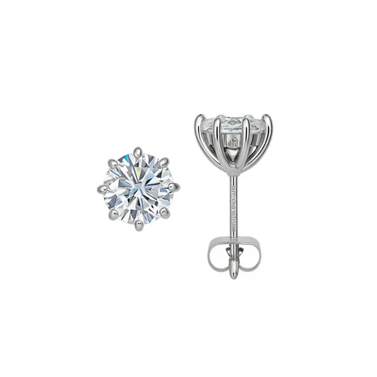 Classic Six-Claw Round Zircon Stud Earrings For Women Engagement Alloy Jewelry