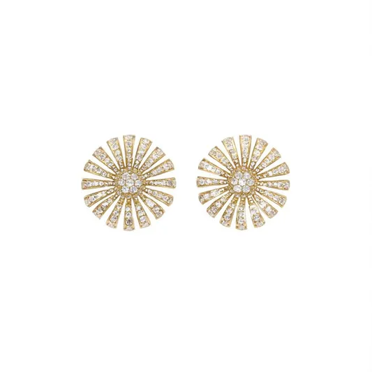 Gold Plated Zircon Flower Stud Earrings For Women Party Jewelry Classic Design Pave Setting Alloy Fashion Earrings