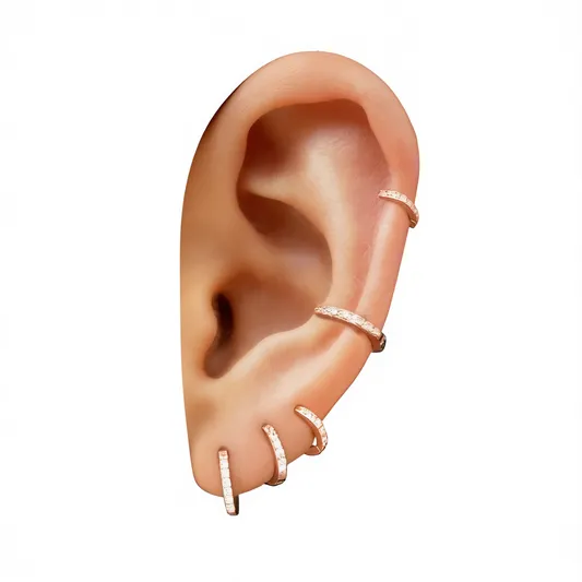 Rose Gold Plated Cuff Earrings Crystal Rhinestone Channel Setting Trendy Alloy Unisex 7mm Inner Diameter