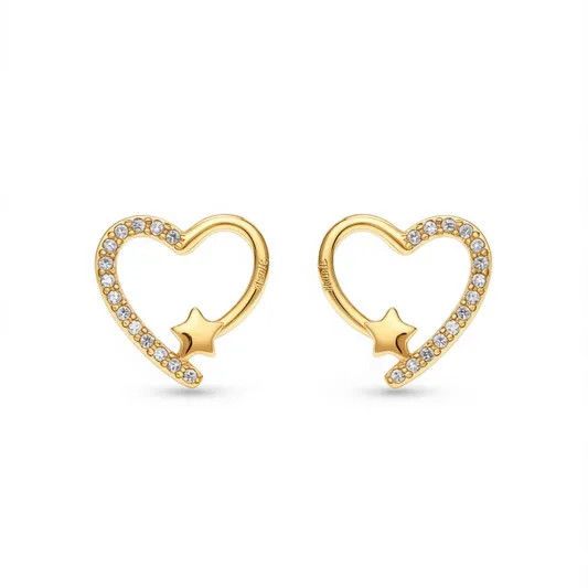 Golden Heart Stud Earrings With Star Crystal Rhinestones For Women Cute Fashion Jewelry Gift 18K Gold Plated Alloy